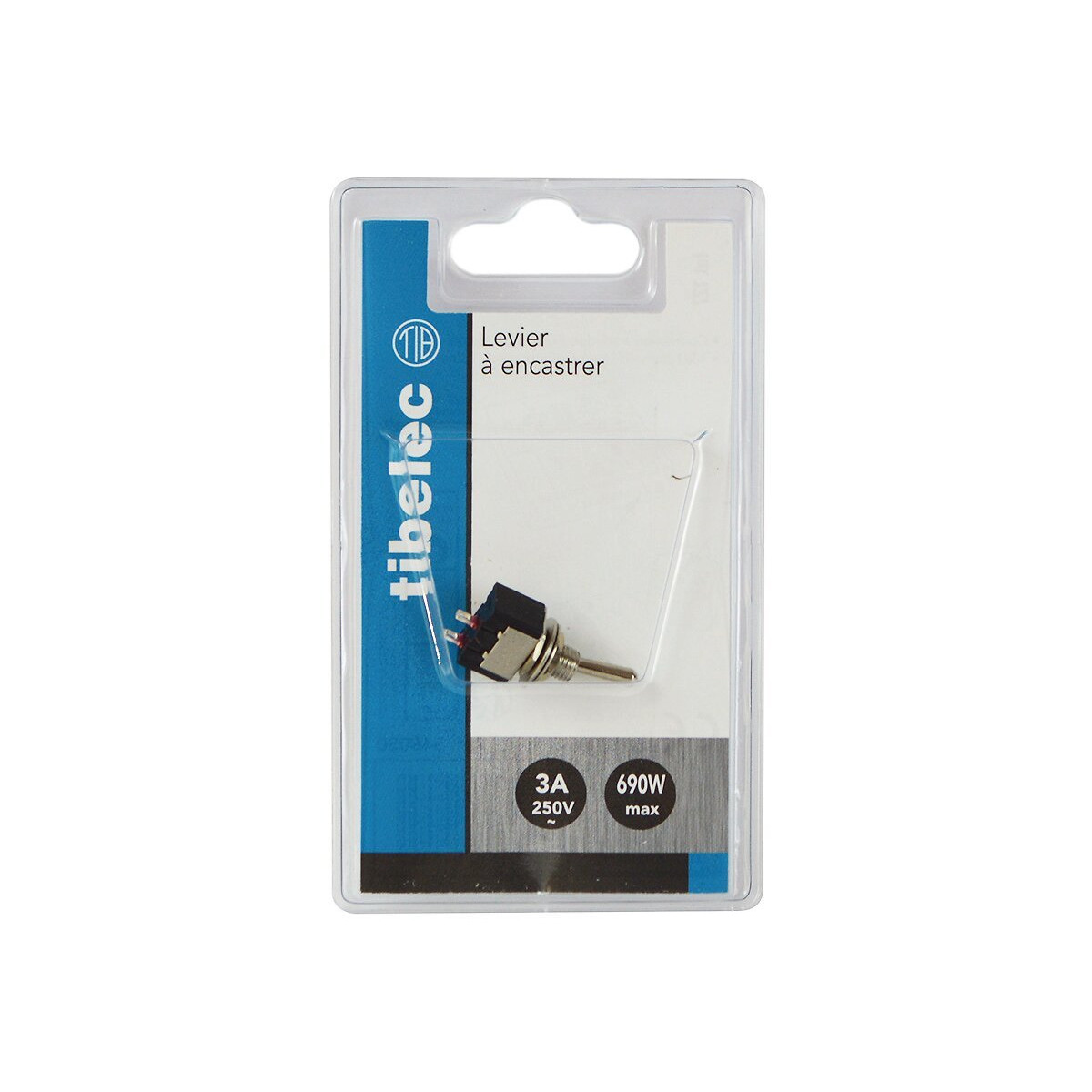 Interrupteur à levier à encastrer 3A. Tension : 250V. Ampérage : 3A. Dimensions : 13x13mm.Spécifications techniques