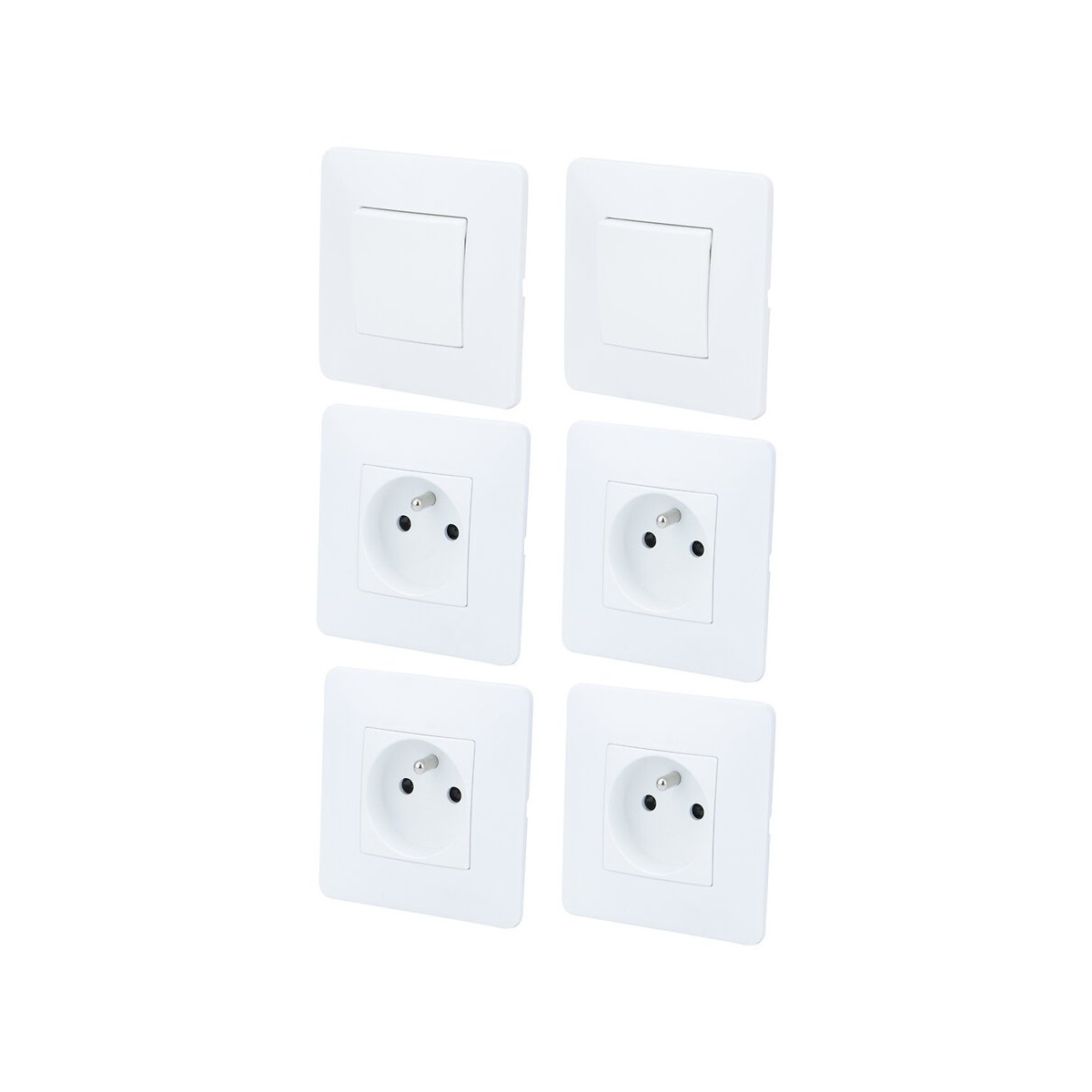 LOT de 2 va-et-vient + 4 2P+T 2ps 2 voies 1 interrupteur de groupe+4pcs prise 2P+T ANTARIA 5 blancSpécifications techniques