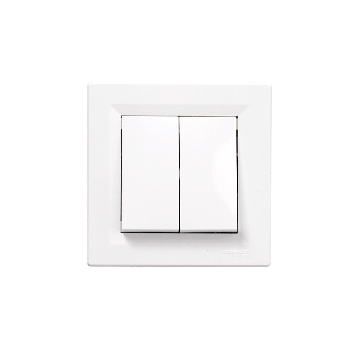 Double interrupteur ou double Va-et-Vient Asfora Blanc. Marque Schneider Electric. Asfora c'est le design classique du carré avec une finition brillante pour un résultat tout en sobriété. Descriptif : - Pour commander 2 circuits d'éclairage. - Facile à installer, griffes fournies. , Pose : à encastrer. - Mode de fixation : Par vis - Nombre de bornes : 6 bornes sans vis - Dimensions du produit (L x l x h) : 4 x 8,2 x 8,2 cm. - Matière : Plastique - Tension : 230 Volts - Puissance : 2300 Watts - Intensité en ampères : 10 A - Utilisation : IntérieurSpécifications techniques