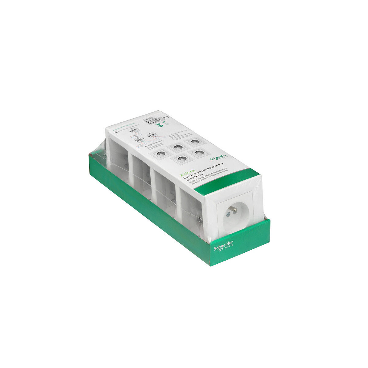 Asfora est une gamme d'appareillages encastrés qui couvre des interrupteurs de commande, des prises de courant et de communication et des variateurs. Les produits Asfora sont fabriqués à partir de matériaux de haute qualité qui ne jaunissent pas au fil du temps. La gamme Asfora bénéficie de la qualité de conception et de fabrication de Schneider Electric. Lot de 5 prises 2P+T Asfora - Schneider. Caractéristiques : Intensité : 16 A. Puissance maxi : 3680 W en 230 V. Bornes de raccordement : A visser, Profondeur d'encastrement mini (mm) : 40, Montage : Ensemble monobloc