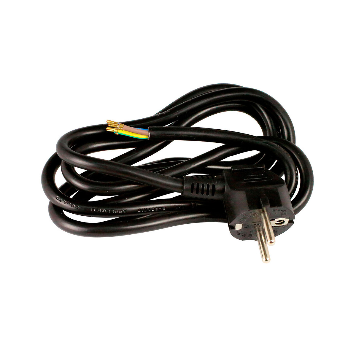 Cordon noir de remplacement de câble d'alimentation électrique pour appareils ménagers avec prise 2P+T 16A. Câblé en HO5VV-F 3G1,5mm² de longueur 2m. Puissance max 3680W sous 230V~.