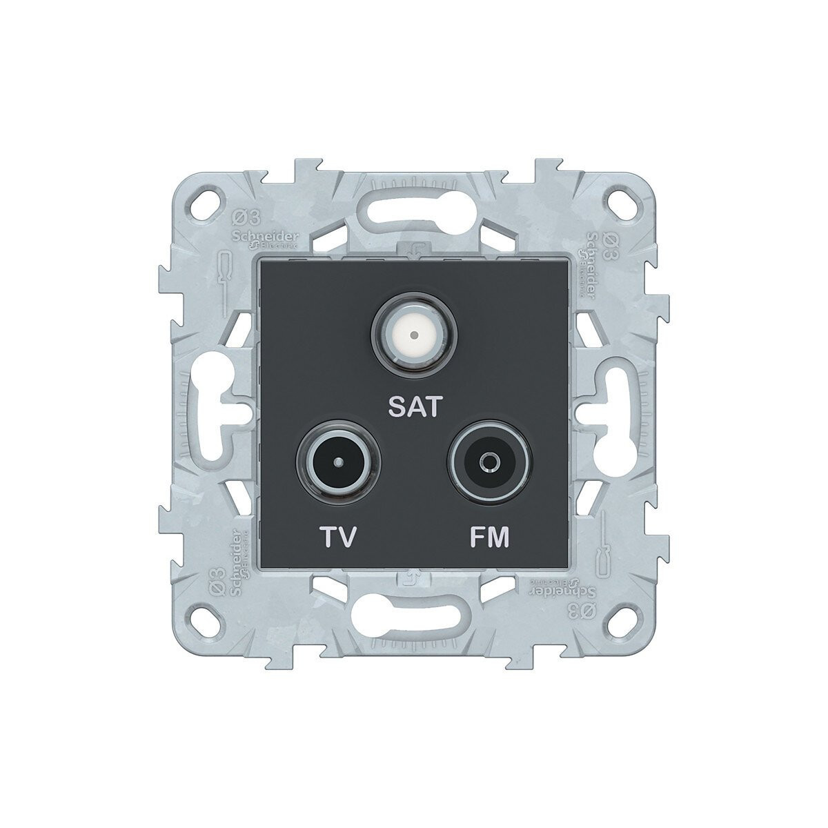 La gamme d'appareillages Unica est une gamme de prises et interrupteurs composables au design carré, aux matériaux nobles et aux couleurs contemporaines. Grâce au grand volume de câblage et au support de fixation intelligent, l'installation se fait de manière simple et rapide. Elle répond à tous vos besoins du résidentiel au tertiaire avec la finition de votre choix : Unica Pro, Unica Studio ou Unica Pure. Tous les mécanismes sont compatibles avec toutes les finitions, qu'il s'agisse d'une installation standard ou en goulotte. Cette gamme << caméléon >>, parfaitement modulable, combine trois éléments : support de fixation, mécanisme, finition. Caractéristiques : Gamme Unica, Prise TV/SAT/FM 1 entrée bornes à vis, fixation par vis et griffes, PVC, Anthracite, Composable, Pose encastrée, 10A, 250V