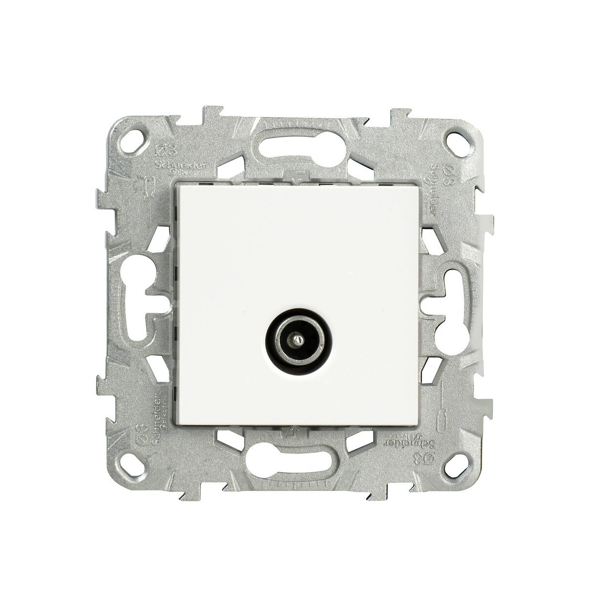 La gamme d'appareillages Unica est une gamme de prises et interrupteurs composables au design carré, aux matériaux nobles et aux couleurs contemporaines. Grâce au grand volume de câblage et au support de fixation intelligent, l'installation se fait de manière simple et rapide. Elle répond à tous vos besoins du résidentiel au tertiaire avec la finition de votre choix : Unica Pro, Unica Studio ou Unica Pure. Tous les mécanismes sont compatibles avec toutes les finitions, qu'il s'agisse d'une installation standard ou en goulotte. Cette gamme << caméléon >>, parfaitement modulable, combine trois éléments : support de fixation, mécanisme, finition. Caractéristiques : Gamme Unica, Prise TV bornes à vis, fixation par vis et griffes, PVC, Blanc, Composable, Pose encastrée, 10A, 250V