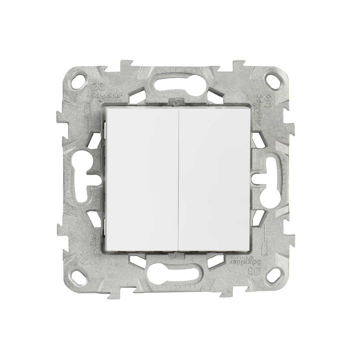 La gamme d'appareillages Unica est une gamme de prises et interrupteurs composables au design carré, aux matériaux nobles et aux couleurs contemporaines. Grâce au grand volume de câblage et au support de fixation intelligent, l'installation se fait de manière simple et rapide. Elle répond à tous vos besoins du résidentiel au tertiaire avec la finition de votre choix : Unica Pro, Unica Studio ou Unica Pure. Tous les mécanismes sont compatibles avec toutes les finitions, qu'il s'agisse d'une installation standard ou en goulotte. Cette gamme << caméléon >>, parfaitement modulable, combine trois éléments : support de fixation, mécanisme, finition. Caractéristiques : Gamme Unica, interrupteur double va-et-vient, bornes automatiques, fixation par vis et griffes, PVC, Blanc, Composable, Pose encastrée, 10A, 250V
