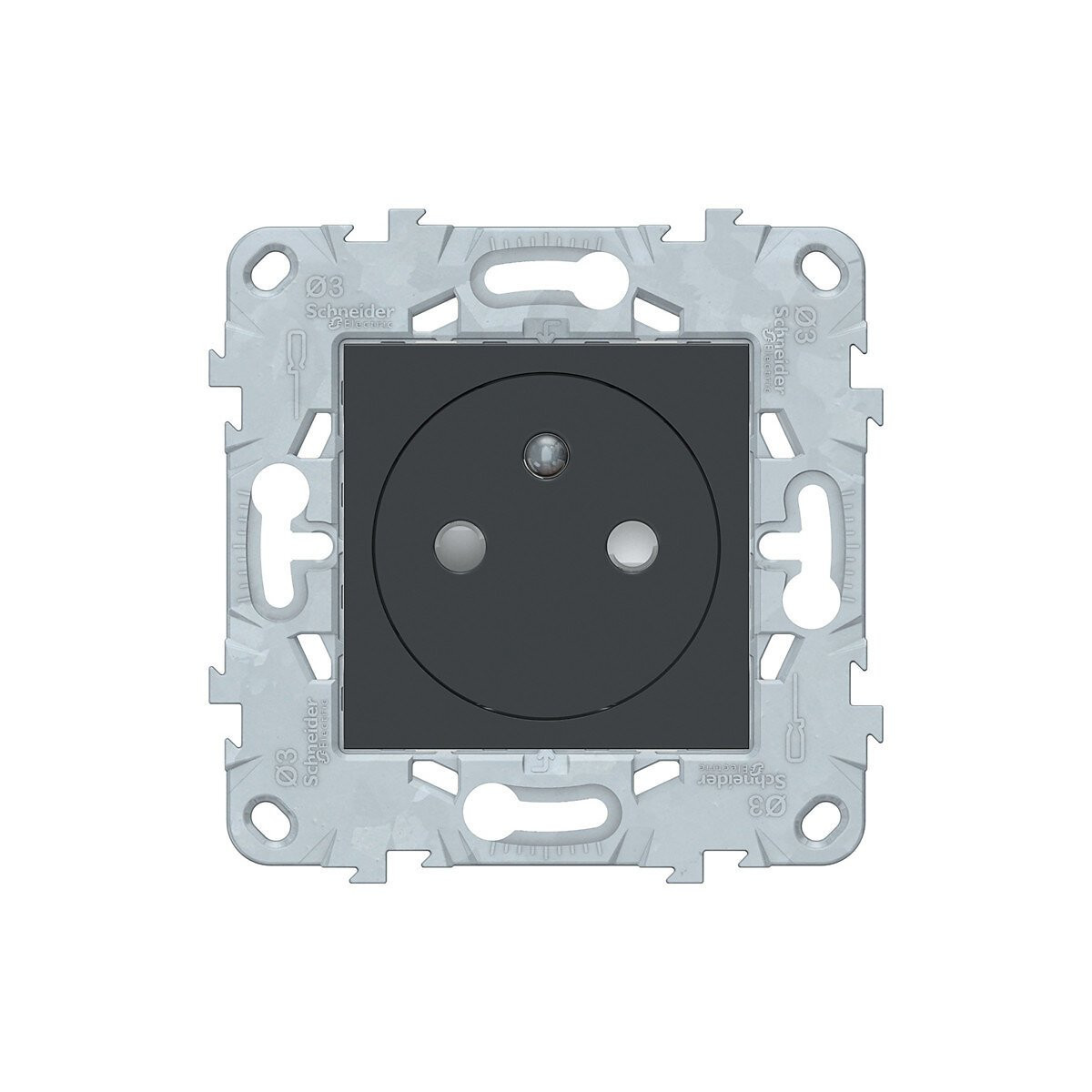 La gamme d'appareillages Unica est une gamme de prises et interrupteurs composables au design carré, aux matériaux nobles et aux couleurs contemporaines. Grâce au grand volume de câblage et au support de fixation intelligent, l'installation se fait de manière simple et rapide. Elle répond à tous vos besoins du résidentiel au tertiaire avec la finition de votre choix : Unica Pro, Unica Studio ou Unica Pure. Tous les mécanismes sont compatibles avec toutes les finitions, qu'il s'agisse d'une installation standard ou en goulotte. Cette gamme << caméléon >>, parfaitement modulable, combine trois éléments : support de fixation, mécanisme, finition. Caractéristiques : Gamme Unica, Prise 2 pôles, bornes automatiques, fixation par vis et griffes, PVC, Anthracite, Composable, Pose encastrée, 16A, 250V