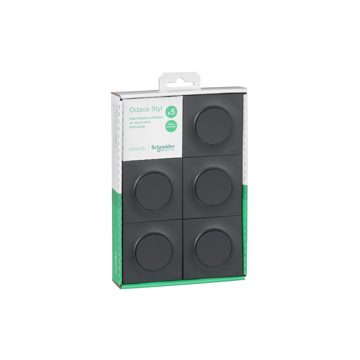 Les prises et interrupteurs de la gamme Odace répondront à toutes vos envies déco, pour le neuf ou la rénovation.Des plus simples aux plus évoluées, les fonctions multimédia (prises chargeur double USB, prises TV.) et les fonctions électroniques (détecteurs de présence, variateur de lumière universel et spécial LED) apportent du confort dans l'habitat et s'adaptent parfaitement au quotidien. Tendance tout en restant accessible à tous, l?appareillage Odace est le mariage réussi du cercle et du carré ! Caractéristiques : Anthracite, poste: 1, NF, IP20, Connexion: Automatique , Encastré, , Carré, IK04.Spécifications techniques
