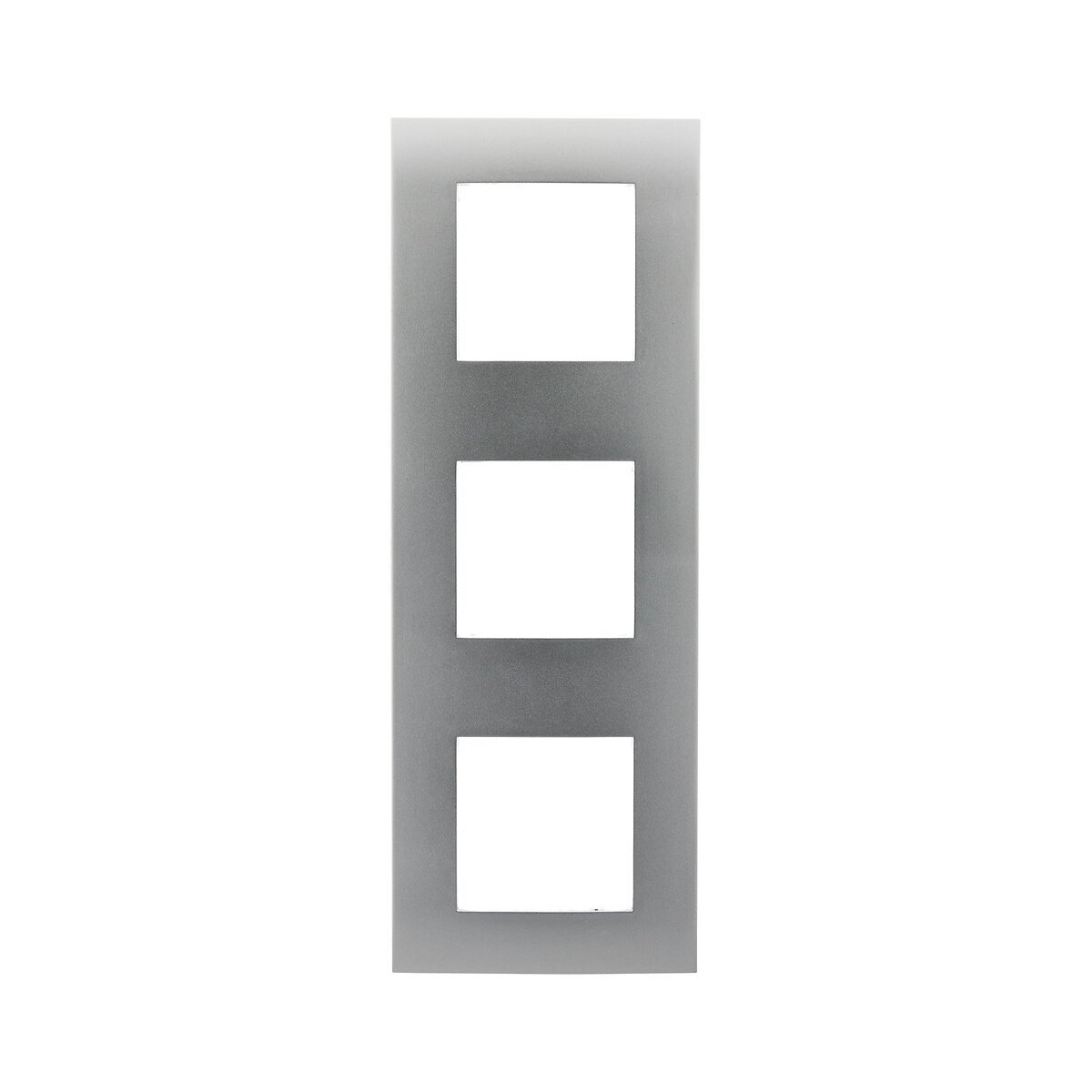 Plaque de finition triple avec 3 supports. Couleur: métal (gris). Fixation à vis ou à griffes (fournies). Certifié NF.Spécifications techniques
