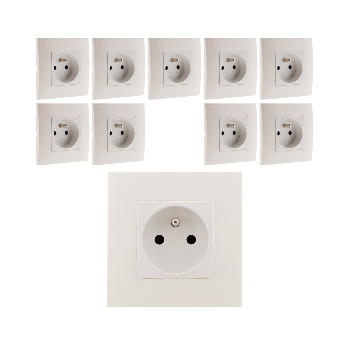 Lot De 10 Prises 2p+t Connexion Auto. Montés Module Large Blanc - Simplea