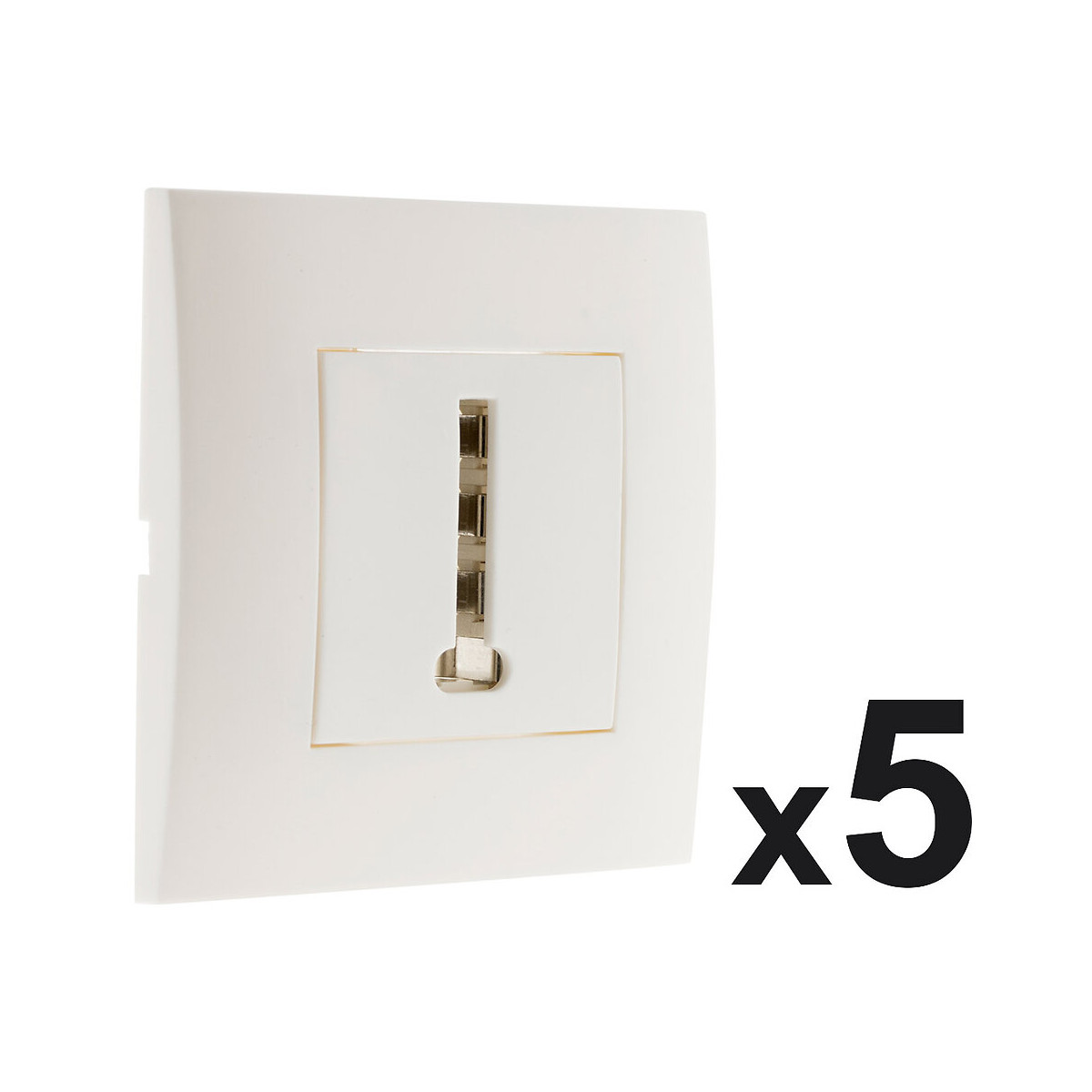 Lot De 5 Prises Tel. 8 Plots Montés Module Large Blanc - Simplea