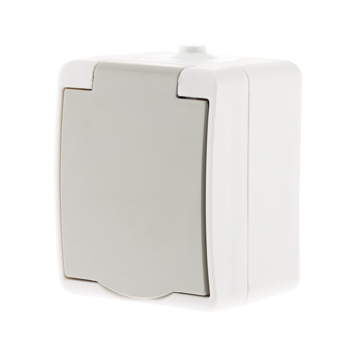 Cette prise 2P+T à clapet étanche (IP54) 16A convient parfaitement à une utilisation en extérieur. Elle'intègre de façon harmonieuse à vos façades. Connexion à vis. Puissance: 3680W-230V. Certifié CE et NF.