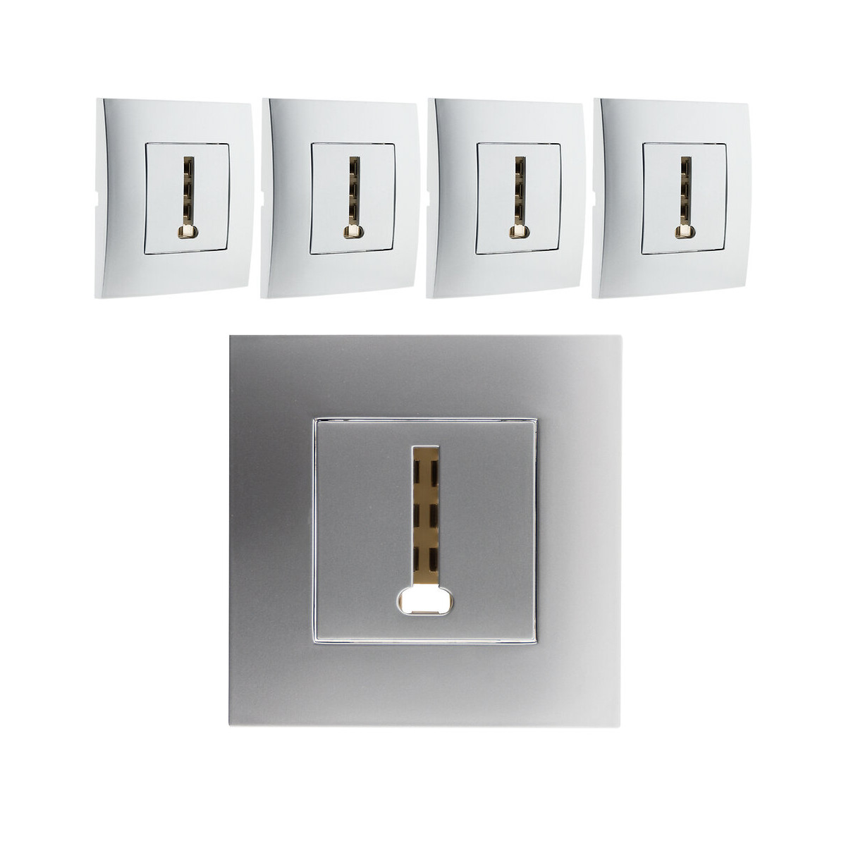 Lot De 5 Prises Tel. 8 Plots Montés Module Large Silver - Simplea