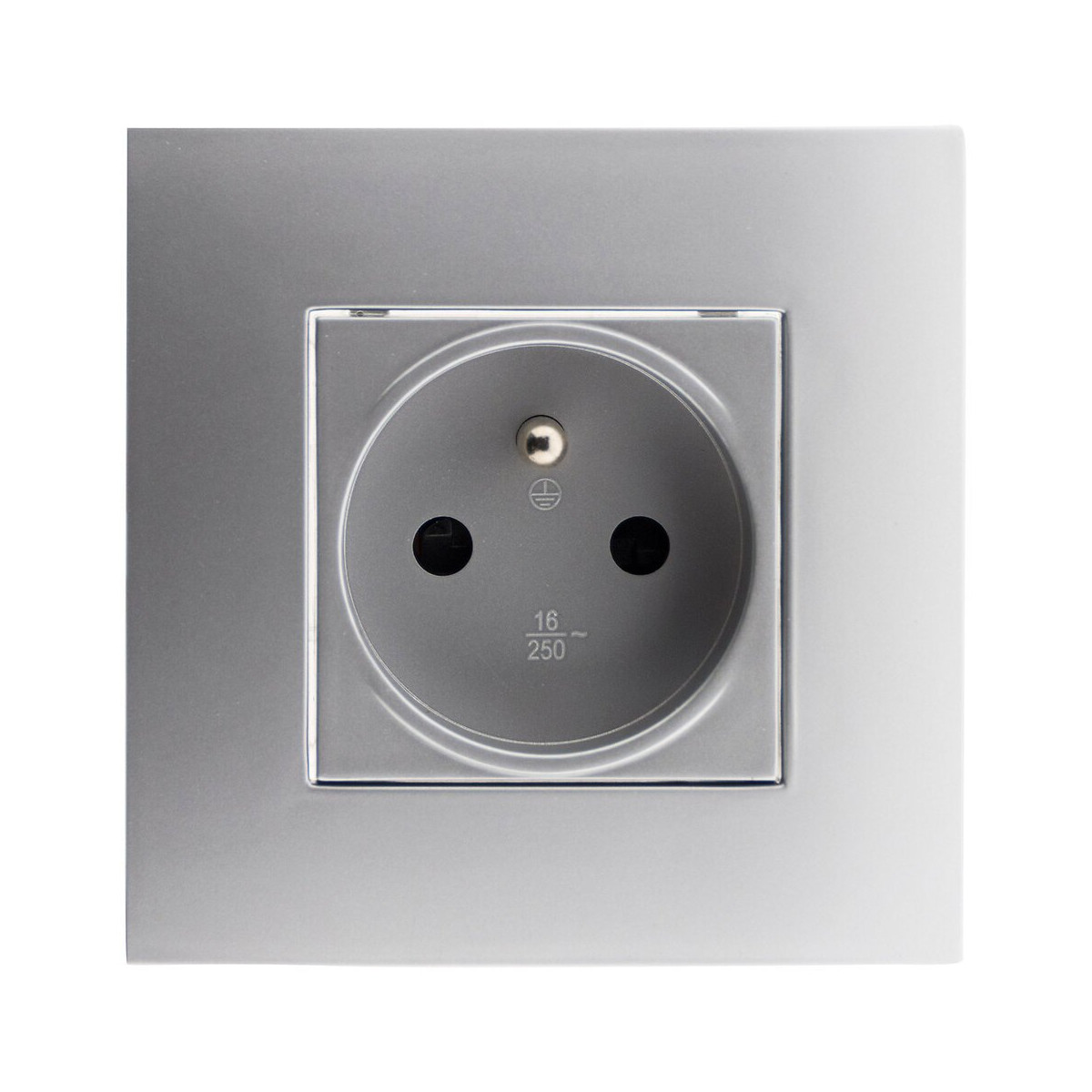 Prise 2P+T 16A à bornes automatiques. Puissance max 3680W sous 230V. Couleur: silver (gris). Fixation à vis ou à griffes. Certifié NF et sécurité enfant.