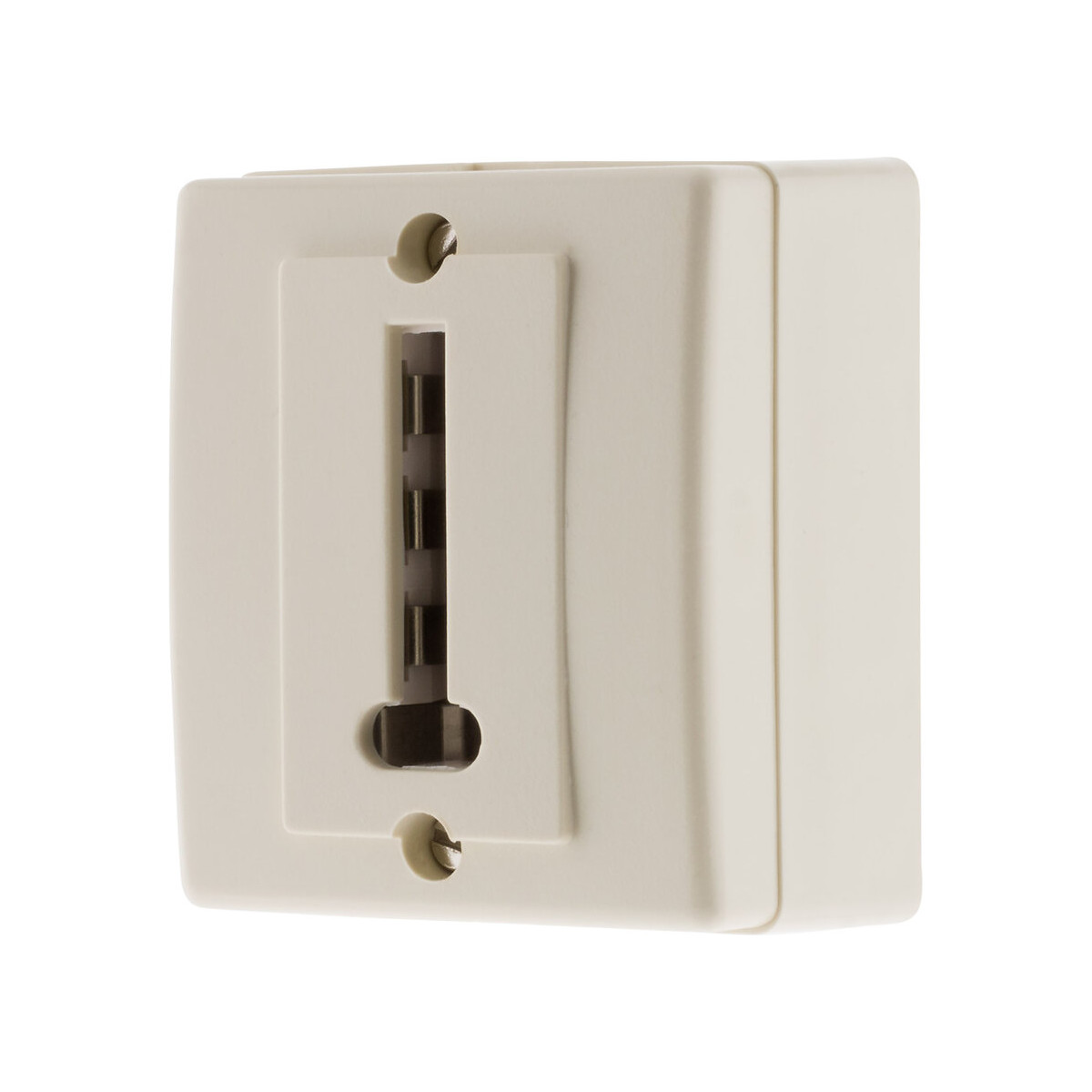 Prise téléphonique 8 plots à installer en saillie. Couleur: blanc. Mécanisme sans vis apparentes, prêt à poser. Compatible avec les moulures standard. Conforme à la norme CE.
