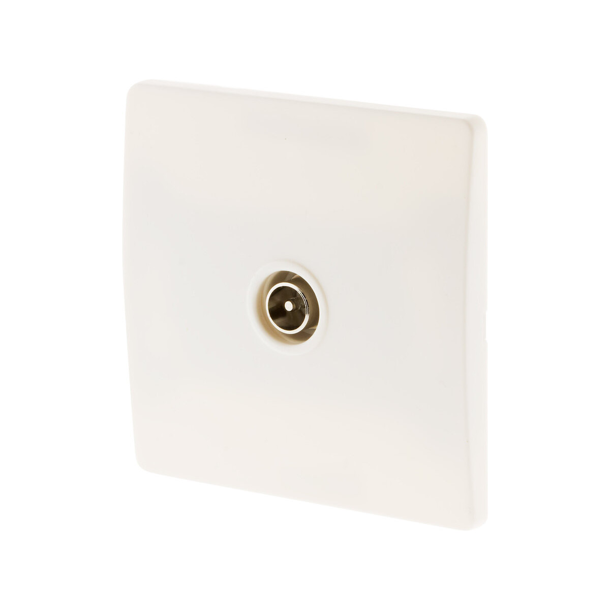 Prise TV Ø9,52mm. Facile à installer et livré avec vis et griffes. Couleur: blanc. Certifié NF et CE.