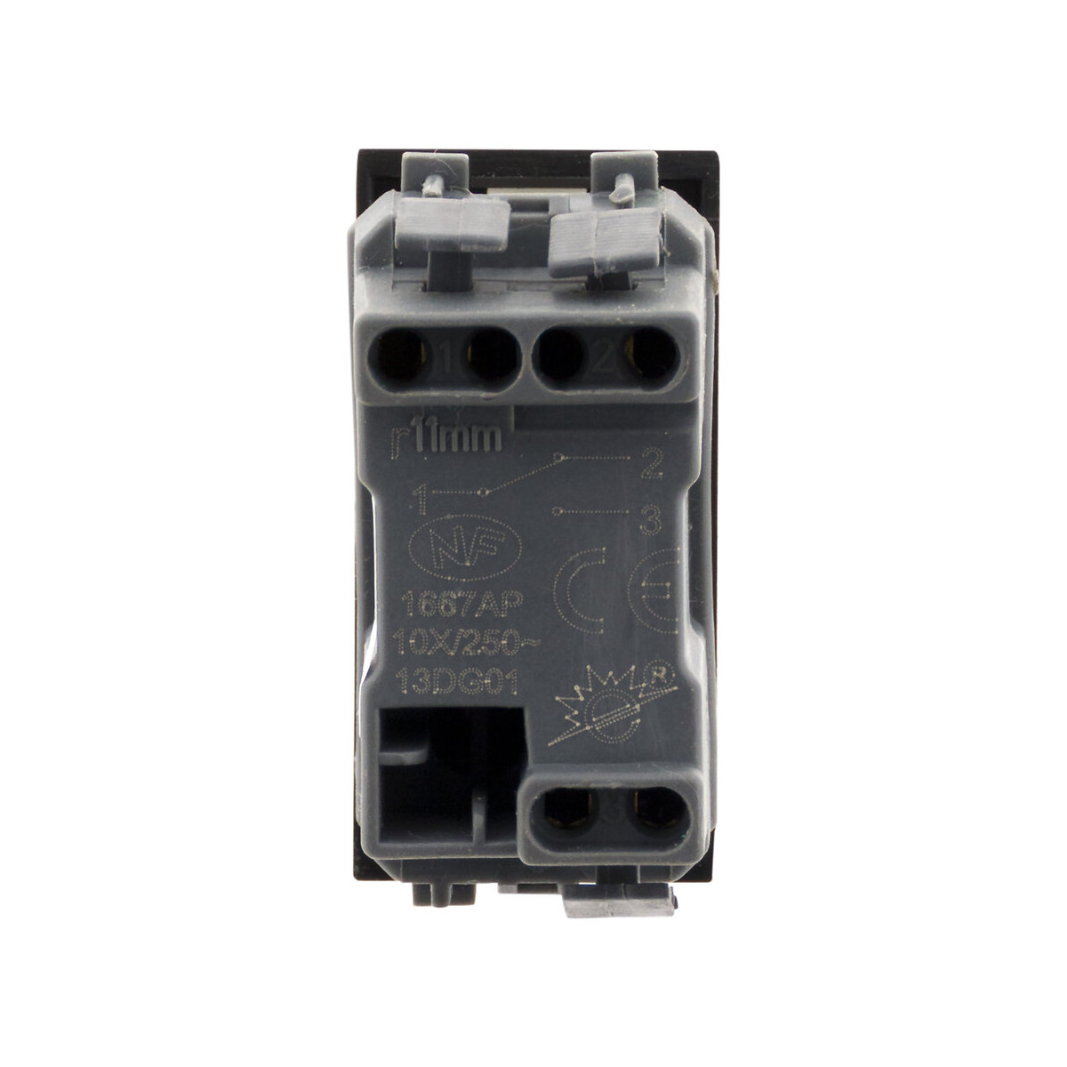 Interrupteur va-et-vient 1/2 module 10A. Puissance max: 2300W sous 230V. Couleur: noir. Fixation à vis ou à griffes. Certifié NF. A associer avec une plaque de finition de la gamme Simplea, parmi le large choix de finitions et de couleurs disponibles.Spécifications techniques
