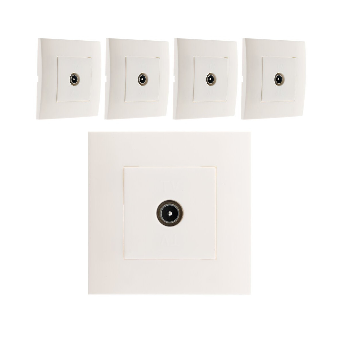 Lot De 5 Prises Tv Montés Module Large - Blanc - Simplea