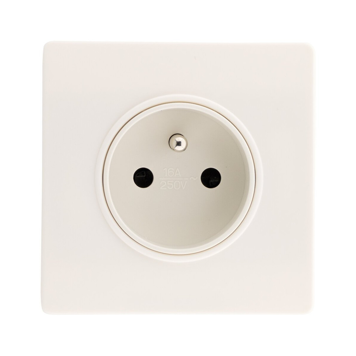 Prise 2P+T 16A à bornes automatiques. Puissance max: 3680W sous 230V. Facile à installer et livré avec vis et griffes. Couleur: blanc. Certifié NF, CE et sécurité enfant.