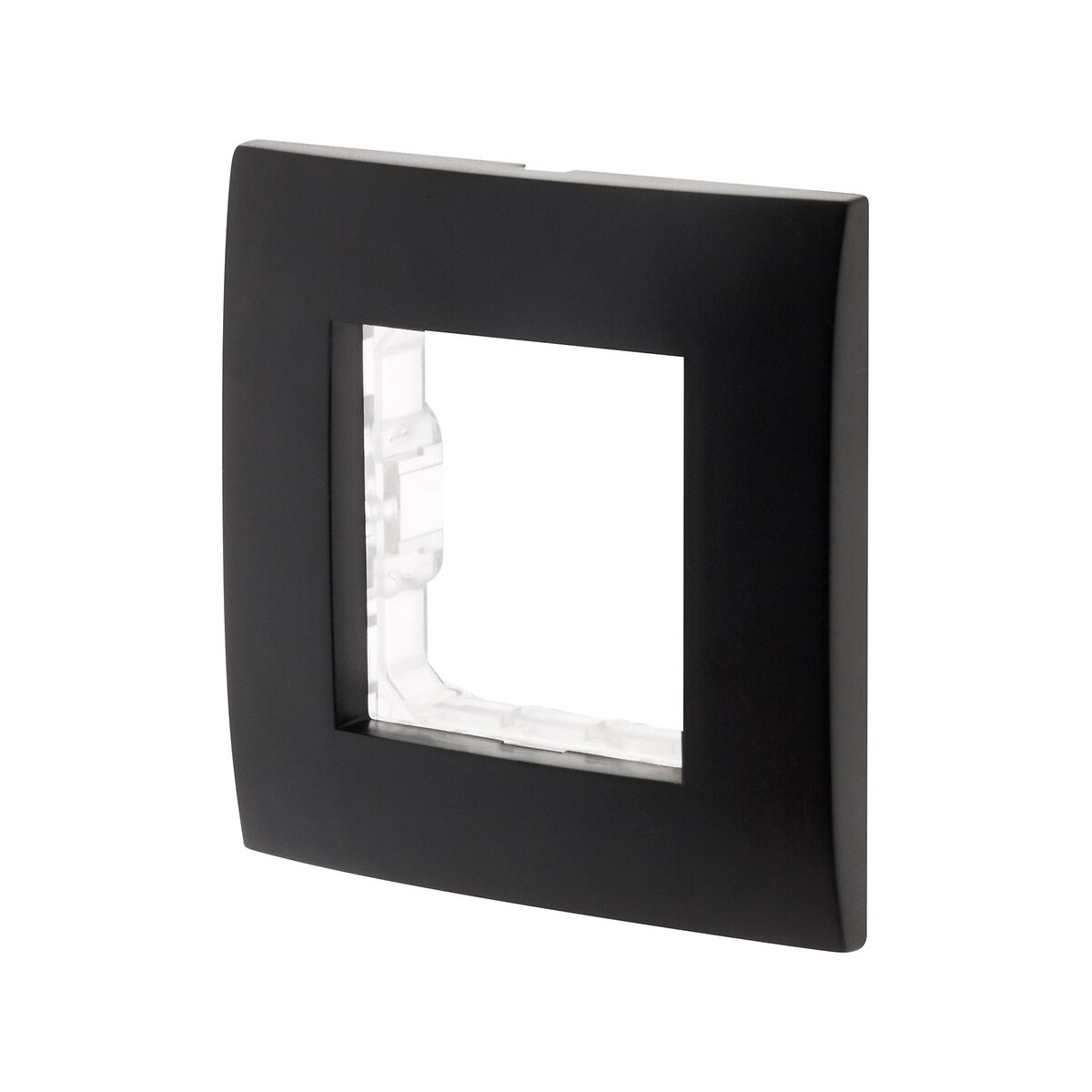 Plaque de finition simple avec son support. Couleur: noir. Fixation à vis ou à griffes (fournies). Certifié NF.Spécifications techniques