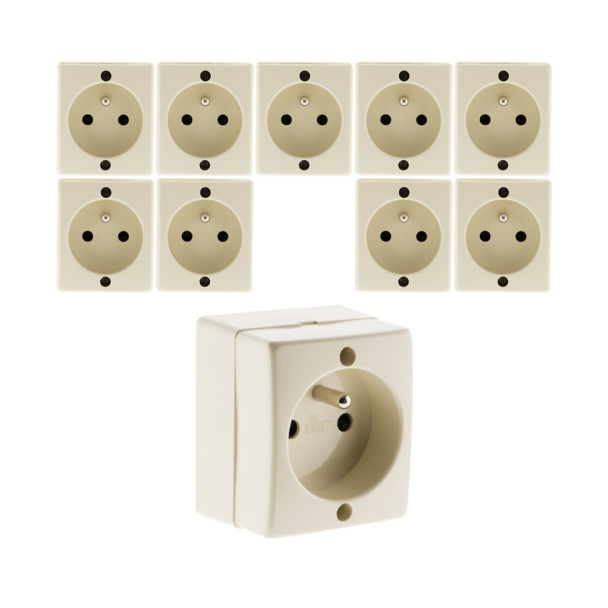 Prise 2P+T 16A à installer en saillie. Puissance maximum 3680W sous 230V. Couleur: blanc. Mécanisme sans vis apparentes, prêt à poser. Compatible avec les moulures standard. Conforme aux normes CE et NF et sécurité enfant.