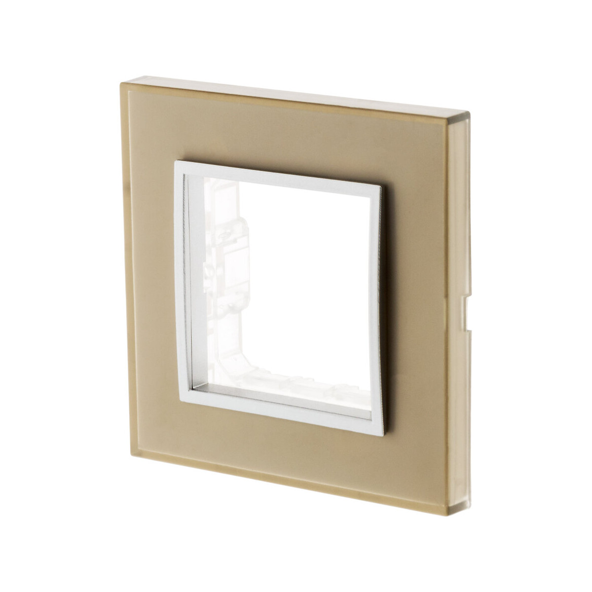 Plaque de finition simple avec son support. Finition: crystal. Couleur: beige. Fixation à vis ou à griffes (fournies). Certifié NF.Spécifications techniques