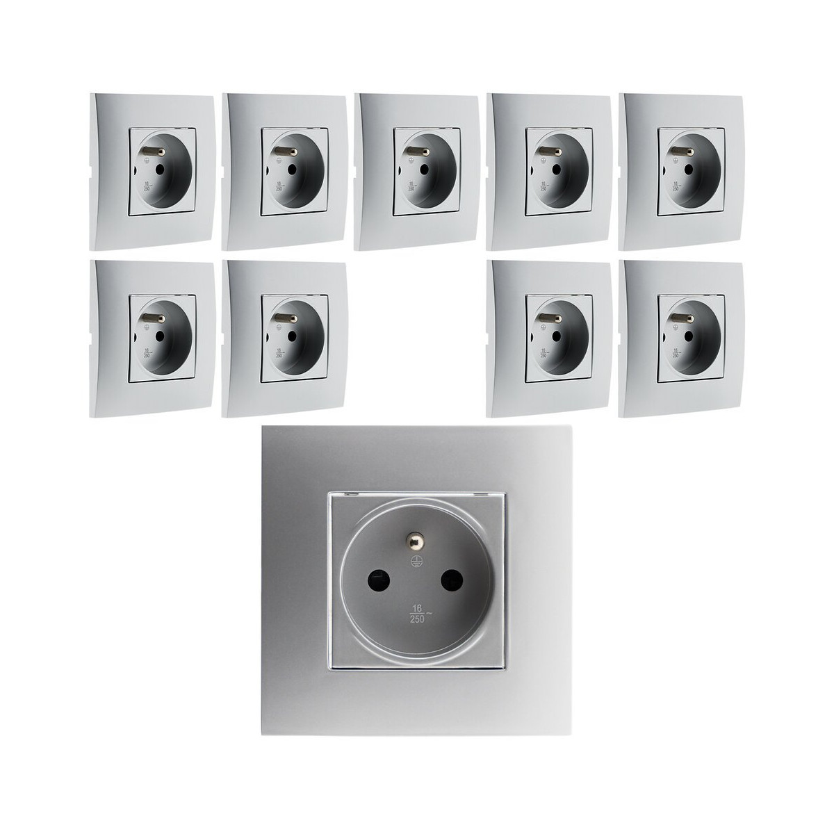 Lot De 10 Prises 2p+t Connexion Auto. Montés Module Large Silver - Simplea