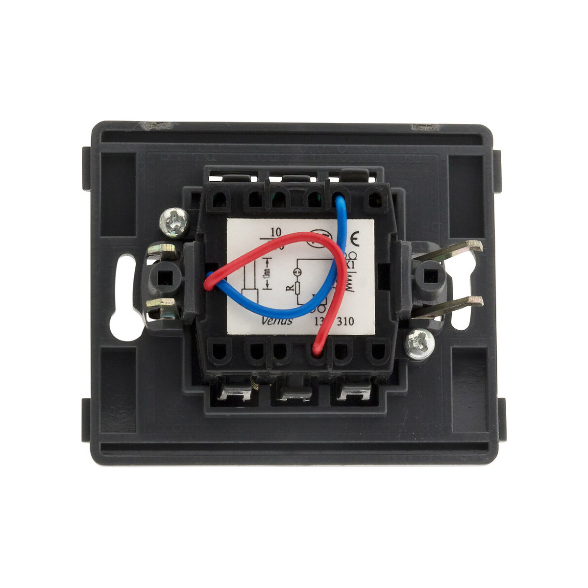 Interrupteur à bouton poussoir à voyant noir 10A à bornes automatiques. Puissance max 2300W sous 230V. Facile à installer et livré avec vis et griffes. Certifié NF et CE. Composez votre appareillage électrique avec les éléments de la gamme Venus pour personnaliser votre intérieur. De nombreuses plaques de finition sont disponibles.Spécifications techniques
