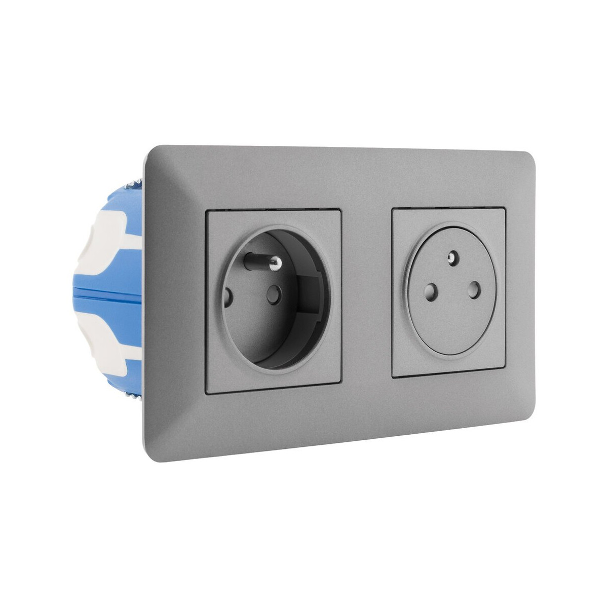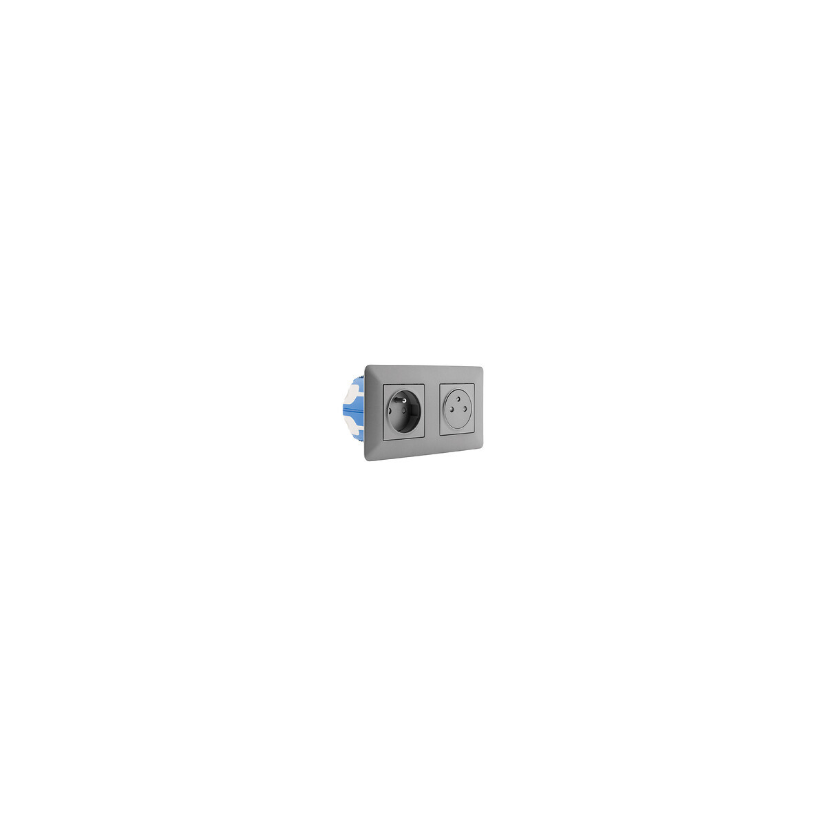 Double Prise Affleurante 2p+t 16a Livrée Avec Boîte D?encastrement Titanium - Artezo