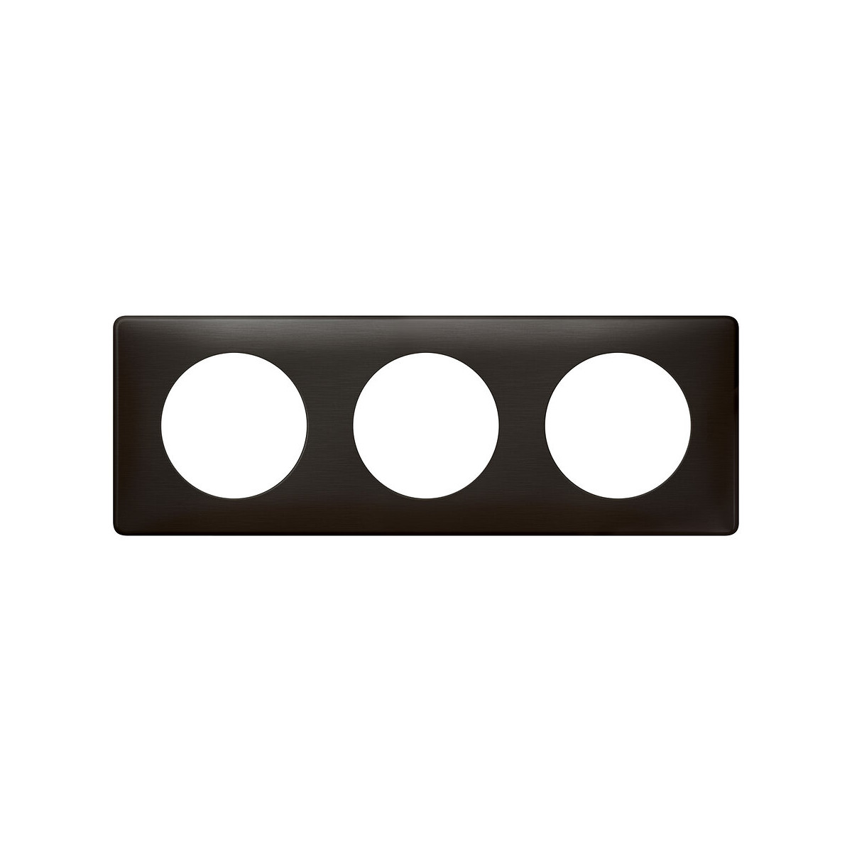 Plaque Céliane - Métal Carbone - 3 postes. Les plaques Céliane permettent de composer des interrupteurs et prises au gré de ses envies, en jouant sur les matières – métal, verre, bois, cuir – et les couleurs.