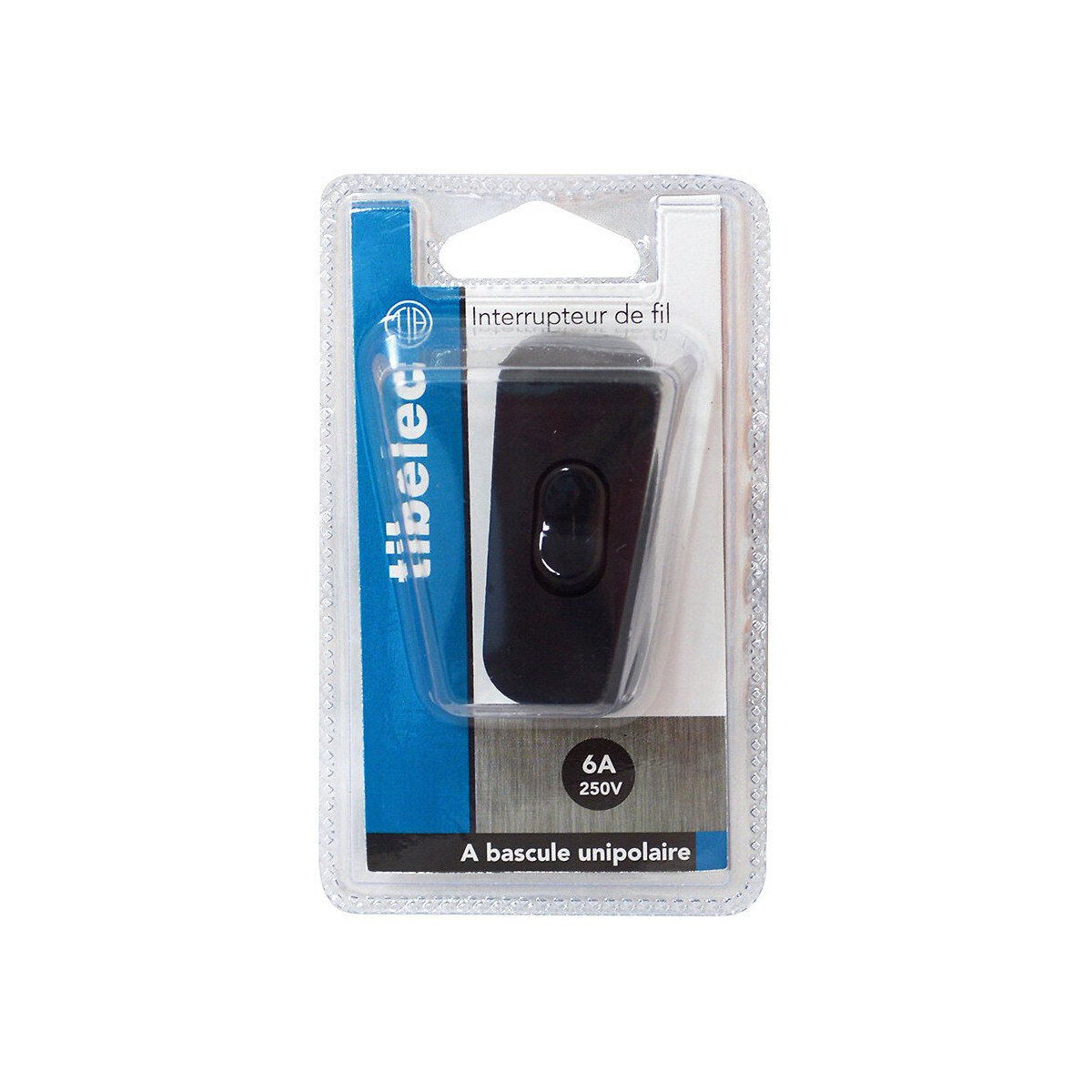 Interrupteur unipolaire 2A noir. Tension : 250V. Ampérage : 2A. Couleur : noir.
