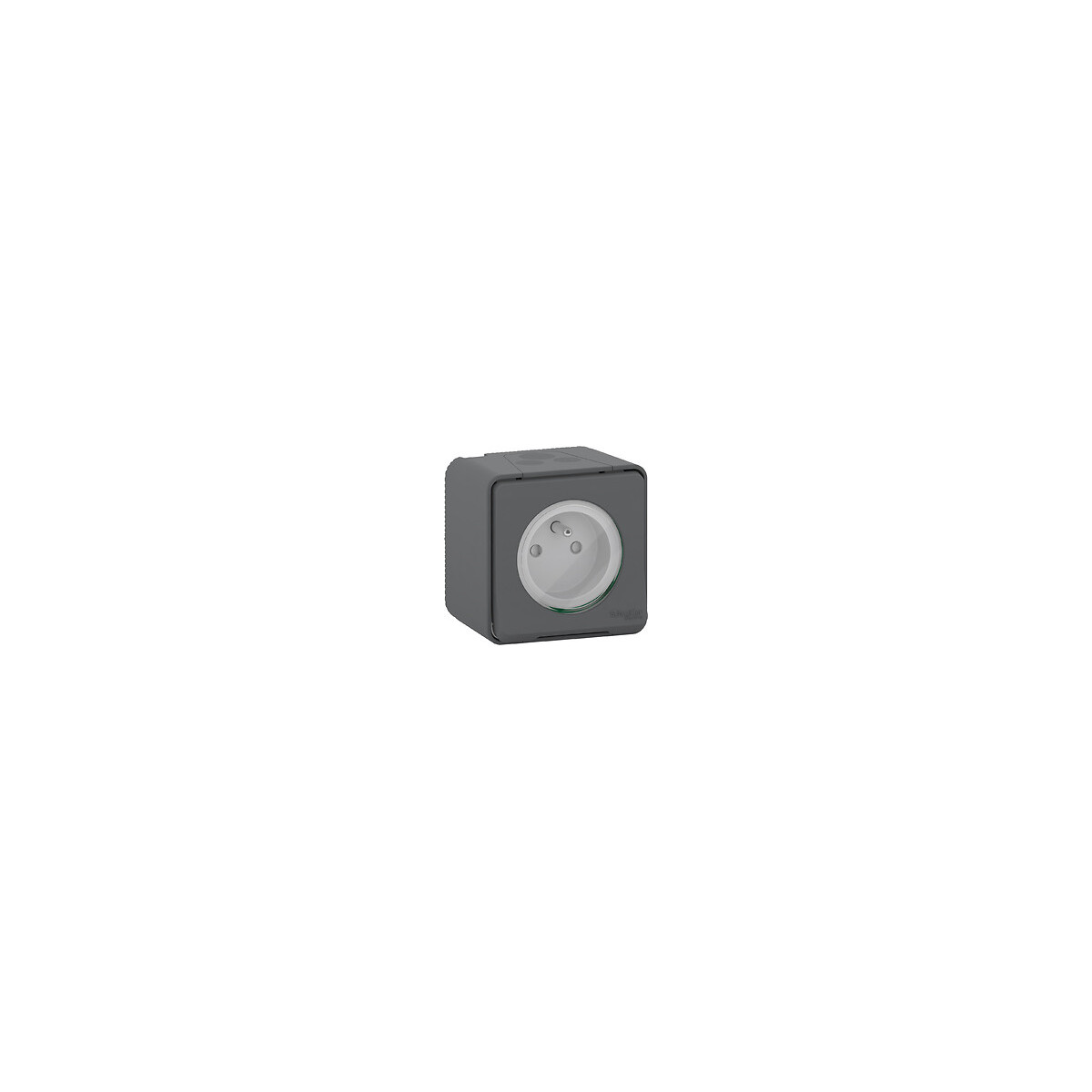 Mureva Styl - Prise de courant 2P+T avec cache transparent - Saillie - Anthracite Poussoir lumineux LED bleu Entrée de câble Accès facile à la vanne Ø 6 à 20 mm Capacité de serrage des bornes 1, 5?2, 5 mm² rigide, 1, 5?2, 5 mm² souple, 1, 5?2, 5 mm² multibrin Conditions d?utilisation Intérieur/Extérieur Nuance de la Couleur Gris (RAL 7016)