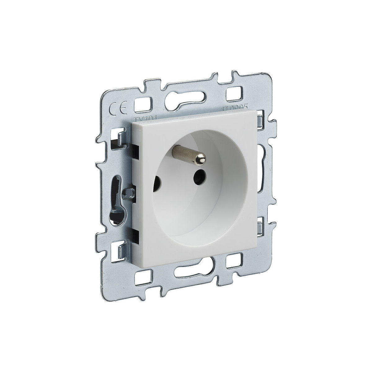 Mécanisme prise à encastrer 2P+T 16A cache blanc + support métal