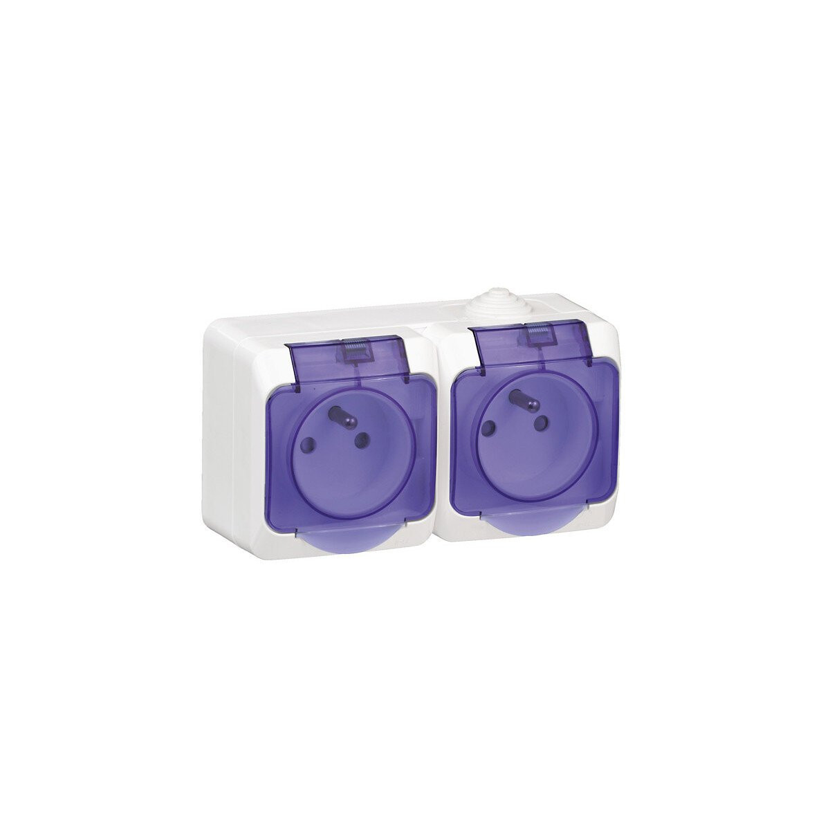 Cedar Plus-Double prise 2P+T avec cache bleu,16A-Blanc