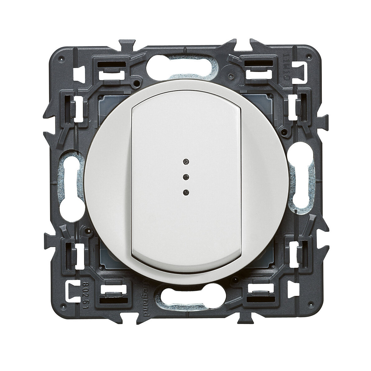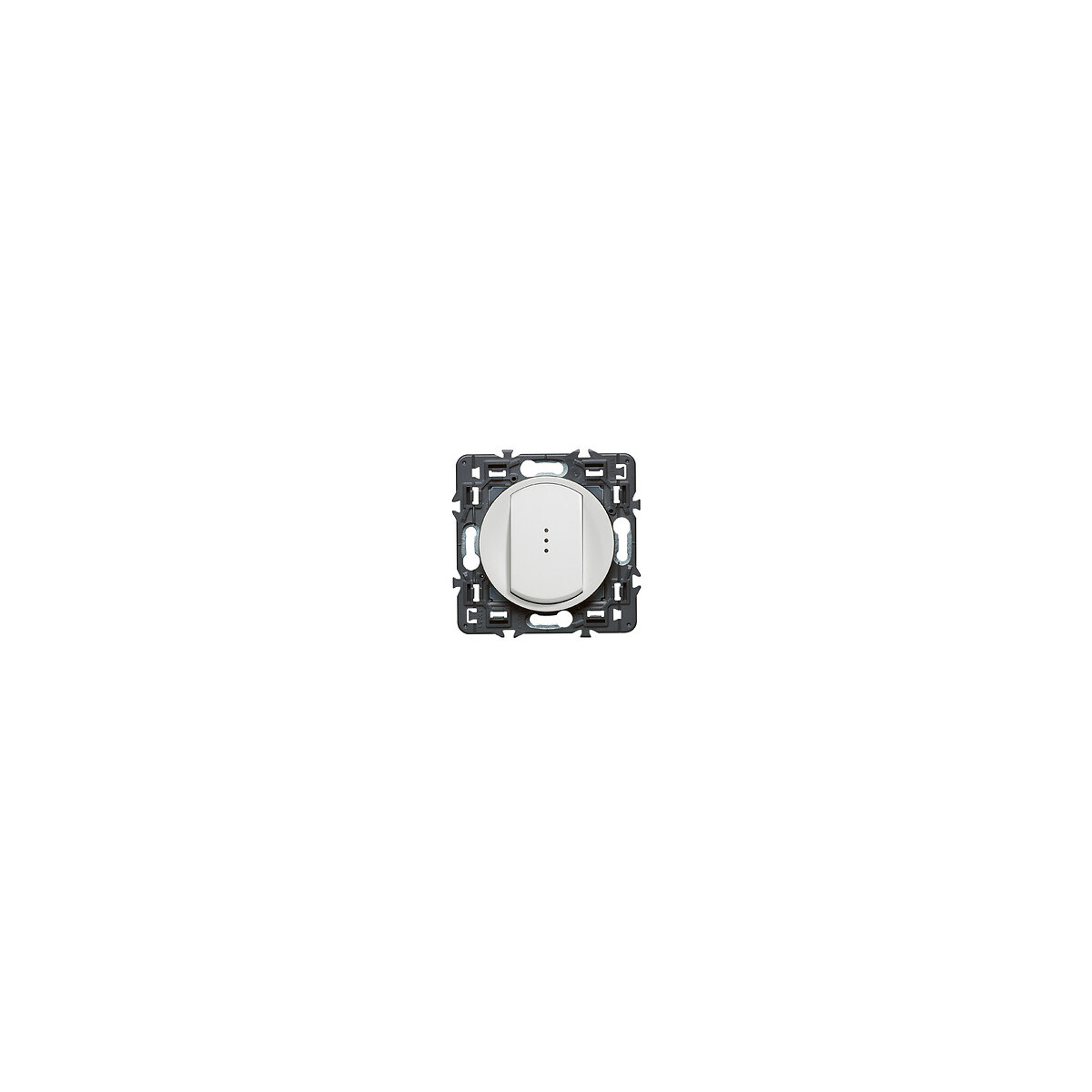 Interrupteur ou va-et-vient témoin avec voyant fourni Céliane Soft 10A - blanc. Un tout-en-un incontournable qui fait fonction d'interrupteur simple ou de va-et-vient s'il est associé à un second interrupteur.