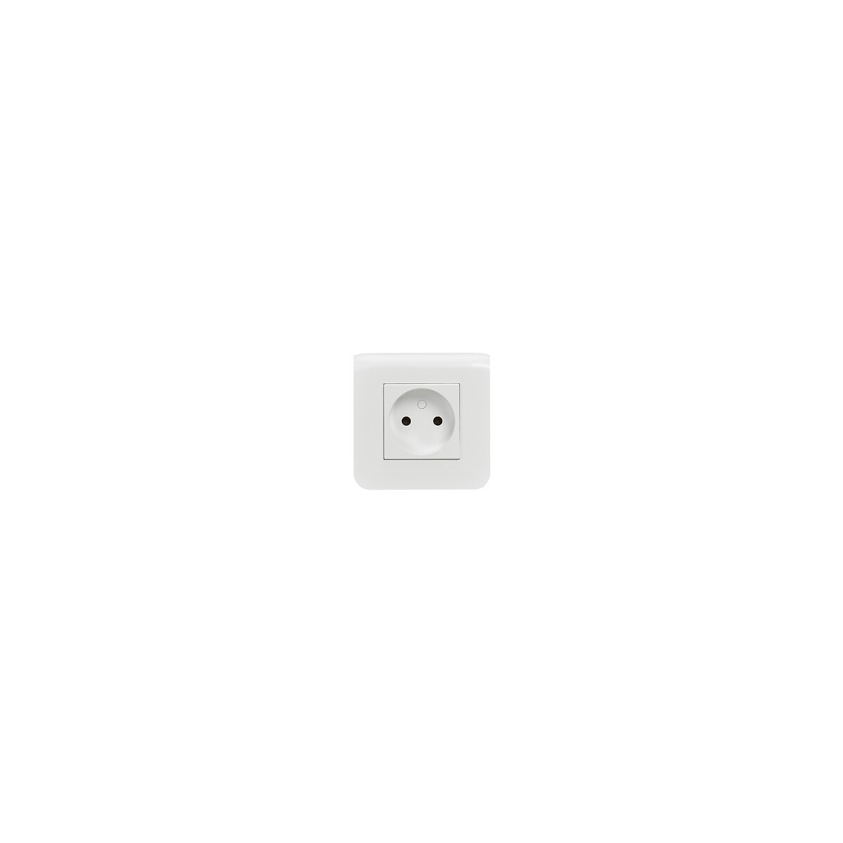 Prise de courant sans terre Mosaic blanc complet avec plaque. La prise de courant sans terre permet de brancher plusieurs appareils électriques ou électroniques. Livré complet avec support Batibox et Plaque de finition Mosaic. Le bornes de connexion dédoublées et repérées permettent le repiquage et facilitent la lisibilité du câblage.