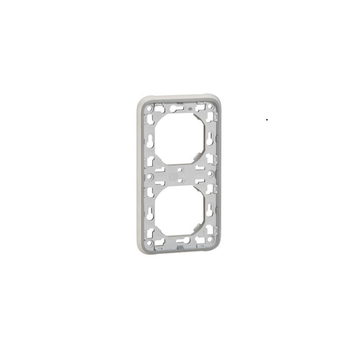 Plaque support Plexo encastré - 2 postes vertical - Gris. Plaque support pour installation des appareils Plexo en encastré dans boîte. Fixation par vis ou griffes dans boîte à encastrer Batibox ou existante.