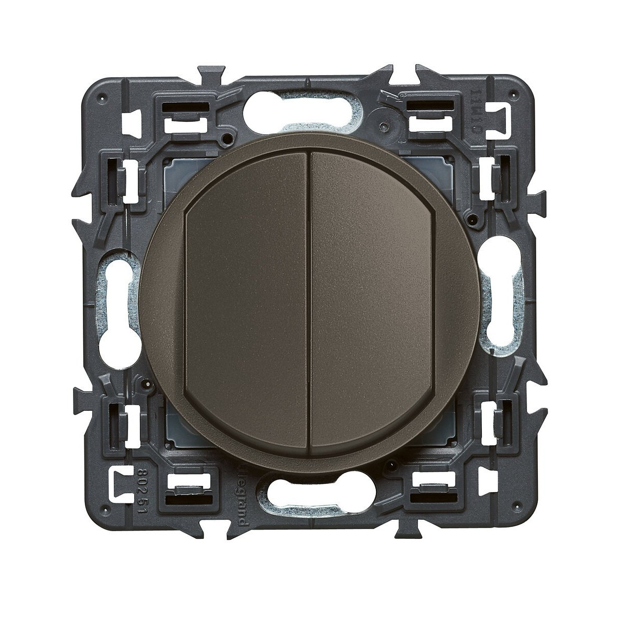 Double poussoir Céliane - 6A - Graphite. Des poussoirs reliés à un télérupteur situé au tableau électrique permettent de commander un même éclairage depuis plusieurs endroits.