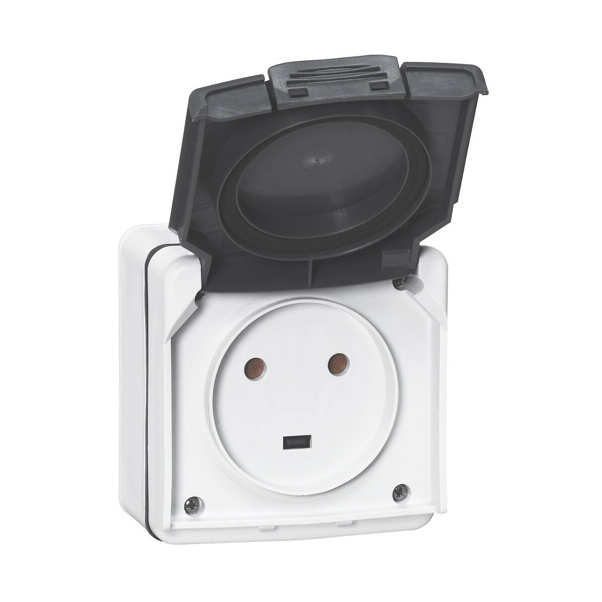 Prise de courant de puissance saillie étanche - 20A - 2 alvéoles - Gris. Prise de courant étanche permettant la connexion de fiche 20 A.