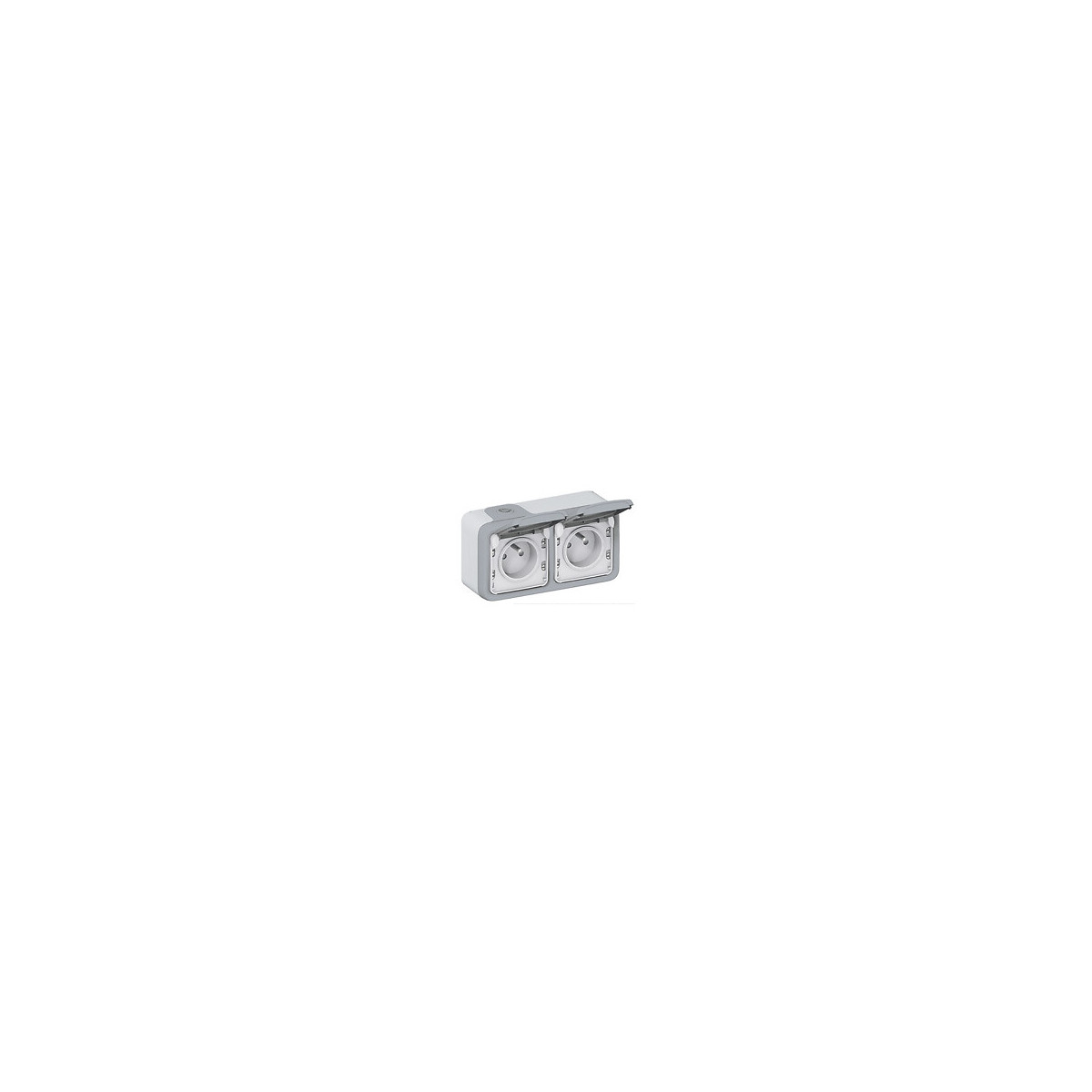 Double prise de courant avec terre Plexo apparent horizontal - Gris