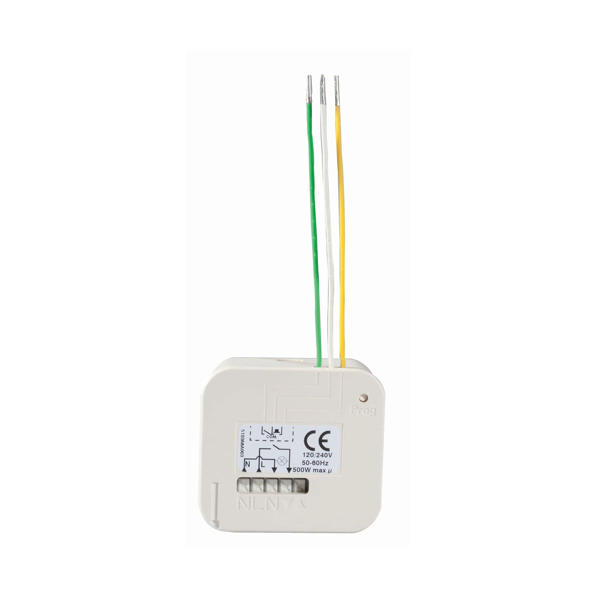 Le micro-récepteur permet de commander un éclairage avec l’ensemble des commandes et accessoires radio Somfy RTS, sans avoir à changer l’interrupteur existant. Caractéristiques : Alimentation : 320V - 50/60 Hz ou 120 V - 60 Hz Fréquence radio : 433,42 MHz Portée : 50 mètres en champ libre Température de fonctionnement : -20°C à +55°C Température de stockage : -30°C à +70°C Catégorie liée à l'environnement : Isolement Cat III et pollution Cat II Altitude maximum d'utilisation : 2000 mètres Indice de protection : IP20 sous réserve du respect des consignes d'installation. Utilisation en intérieur uniquement ( protection contre les corps solides de diamètre > 12 mm, aucune protection contre les fluides) Dimensions : Longueur 41 mm Hauteur 45 mm Profondeur 19 mm Sortie de commande : Lampes halogènes 500 W max.; Lampes fluocompactes/Led 60W max.; le micro-récepteur éclairage est incompatible avec les transformateurs électroniques Porduit sensible aux chocs et aux chutes