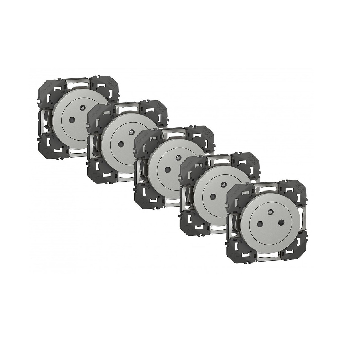 La prise surface allie sécurité et design, et évite l'accumulation de poussière. Bornes automatiques permettant la connexion rapide sans outil. Rattrapage angulaire (-13°/+11°) : facilite la mise à niveau du mécanisme lorsque la boîte n'est pas parfaitement horizontale. A associer avec une plaque de finition de la collection Dooxie (non fournie). Les appareillages Dooxie sont modernes et faciles à installer. La gamme Dooxie apporte une touche d’élégance et propose de nombreuses finitions. Usage en intérieur uniquement. Lot de 5 prises affleurantes, qui permettent de brancher vos appareils électriques. Nom du produit: Lot de 5 prises avec terre Marque du produit: LEGRAND Nom de la série: Dooxie Type de produit: A assembler Couleur: Aluminium Matière principale: Plastique Finition du produit: Mat Nombre de modules: 1 Intensité (en A): 16 Tension (en V): 230 Sécurité enfant: Oui Fixations fournies: Non Hauteur (en mm): 73 Largeur (en mm): 73 Profondeur (en mm): 38.4 Pays de fabrication: France Garantie (en années): 2 Indication du geste de tri (triman): Nos produits et emballages peuvent faire l'objet d'une consigne de tri. Pour en savoir plus : www.quefairedemesdechets.fr Produit emballé : poids (en kg): 0.266 Produit emballé : largeur (en cm): 8.2 Produit emballé : hauteur (en cm): 7.4 Produit emballé : profondeur (en cm): 26.9