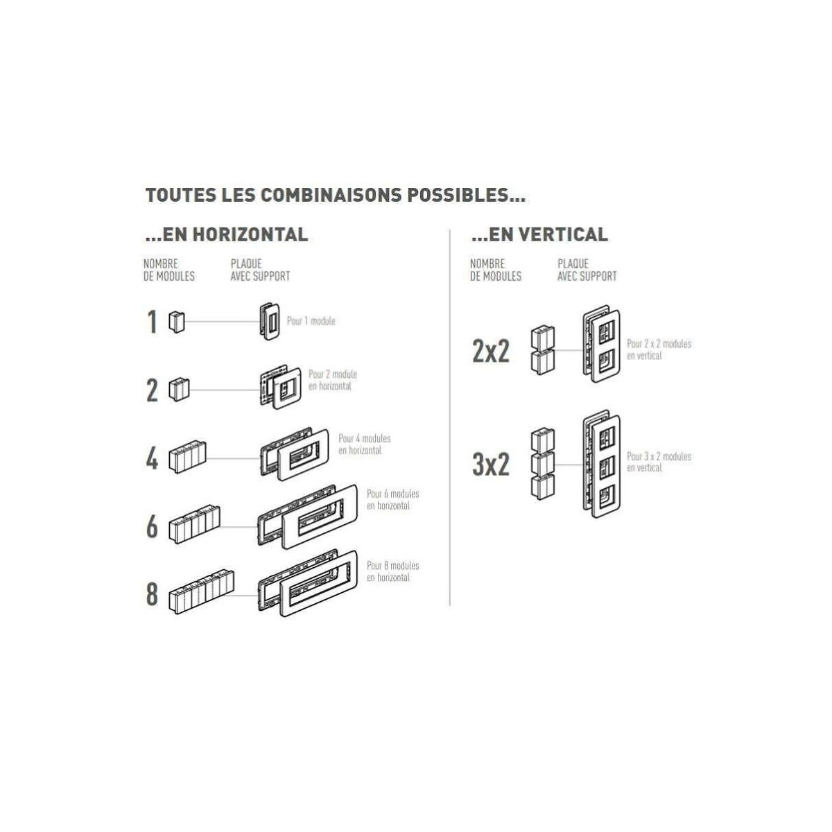 L'encoche présente de chaque côté de la plaque permet un démontage facile et rapide à l'aide d'un outil Pour une rénovation classique et optimisée, choisissez des interrupteurs et prises Mosaic. La gamme Legrand Mosaic permet de multiplier les fonctionnalités grâce à ses interrupteurs et prises étroits. Legrand - Plaque de finition horizontale spéciale rénovation Mosaic pour 2x2 modules blanc Marque du produit: LEGRAND Nom de la série: Mosaic Nom du produit: Plaque Couleur: Blanc Matière principale: Plastique Finition du produit: Brillant Hauteur (en mm): 82 Largeur (en mm): 139 Pays de fabrication: France Garantie (en années): 2 Indication du geste de tri (triman): Nos produits et emballages peuvent faire l'objet d'une consigne de tri. Pour en savoir plus : www.quefairedemesdechets.fr