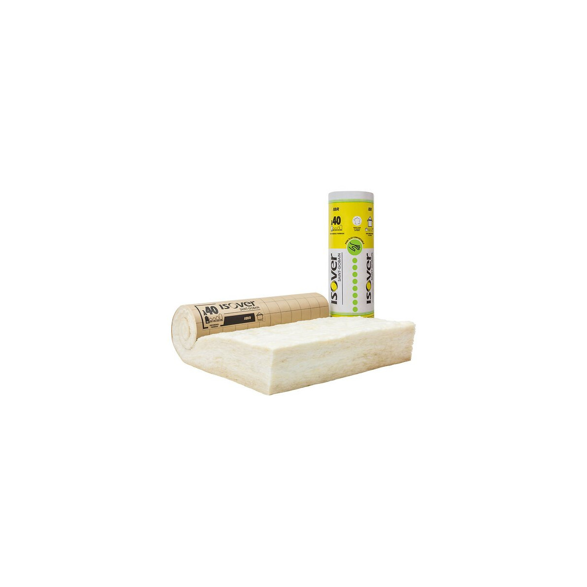 Rouleau souple en laine de verre revêtu d'un surfaçage kraft quadrillé tous les 10 cm pour l'isolation des combles perdus. R = 6.50. Lambda = 40.