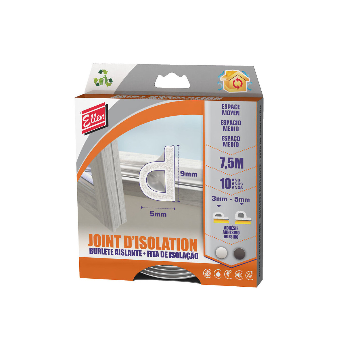 coloris : blanc- auto-adhésif - Dimension: 5.5mm (H) x 9mm (E)- Espace à combler de 3 to 5 mm- Longueur :: 7.5m