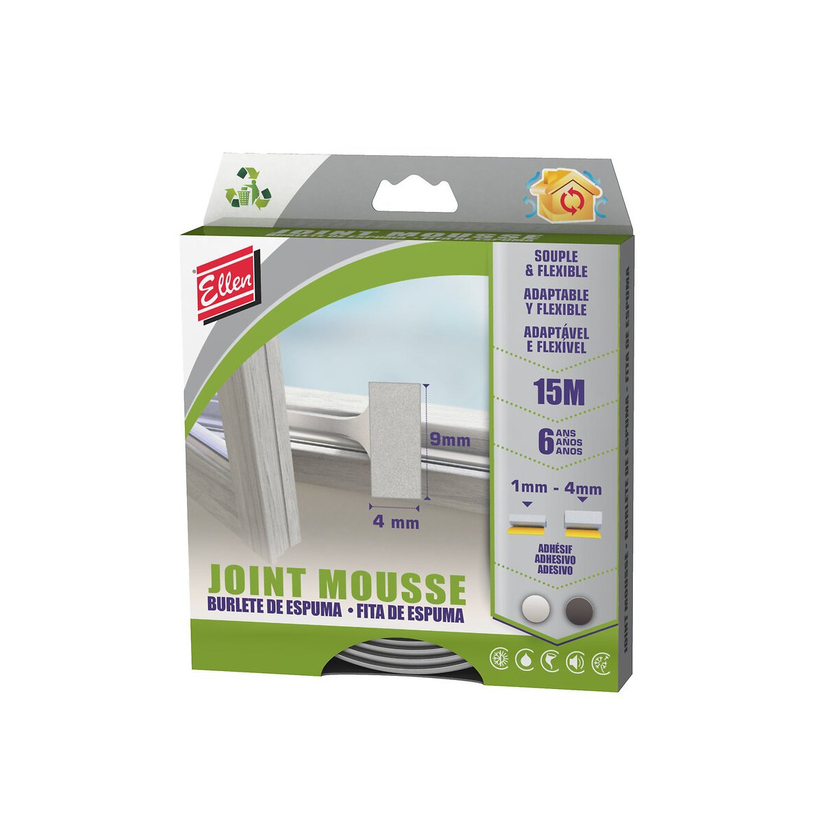 Auto-adhésif- espace à combler: 1- 5 mm- Dimension: 4mm (H) x 9mm (E)- Longueur ::15M