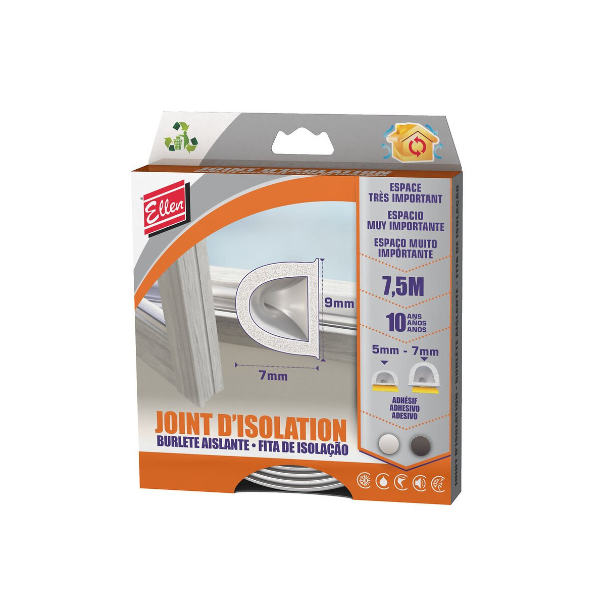blanc color- auto-adhésif - Dimension: 7.5mm (H) x 9mm (E)- Espace à combler de 5 à 7 mm- Longueur :: 7.5m