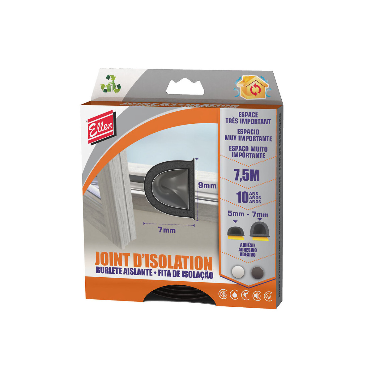 coloris noir marron- auto-adhésif - Dimension: 7.5mm (H) x 9mm (E)- Espace à combler de 5 à 7 mm- Longueur :: 7.5m
