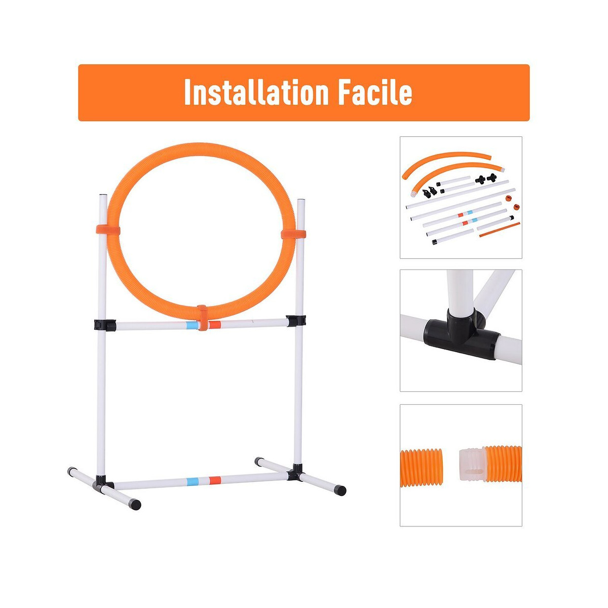 Agility Sport Pour Chiens Anneau D'agilité Et Obstacle 2 En 1 Avec Sac De Transport Plastique Blanc Orange