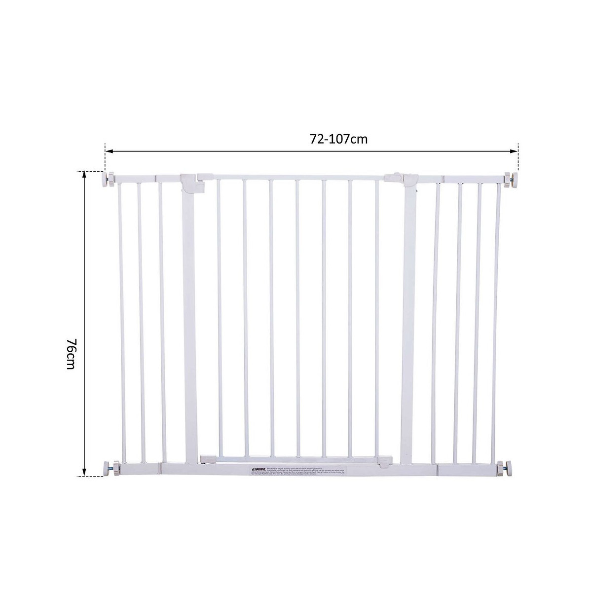 Description : Cette barrière de protection est idéale pour portes et escalier d'une largeur comprise entre 72 et 107 cm. Elle vous permettra d'offrir un maximum de sécurité pour votre animal. Cette barrière de protection métallique se fixe par simple pression entre les cloisons ou encadrement de porte. Aucun perçage ni vissage requis. Caractéristiques : - Idéal pour les animaux domestiques et les empêcher d'accéder aux pièces de votre maison - Fabriquée en acier revêtu de poudre, très robuste et durable - Idéal pour une installation dans les encadrements de porte et en bas des escaliers - Compatible avec des ouvertures de 72 à 107 cm - Le cadre en U à fixation par pression 4 points permet une fixation ferme - Système d'ouverture à une seule main pour plus de simplicité et de facilité d'utilisation - Montage facile et rapide : aucun perçage ni vissage requis Spécifications : - Couleur : blanc - Matériaux principaux : métal, plastique - Dim. totales : environ 107L x 4l x 76H cm - Dim. extensions de la porte : 10 x 76 cm et 15 x 76 cm - Livraison effectuée en un colis - Réf. : D06-058Spécifications techniques