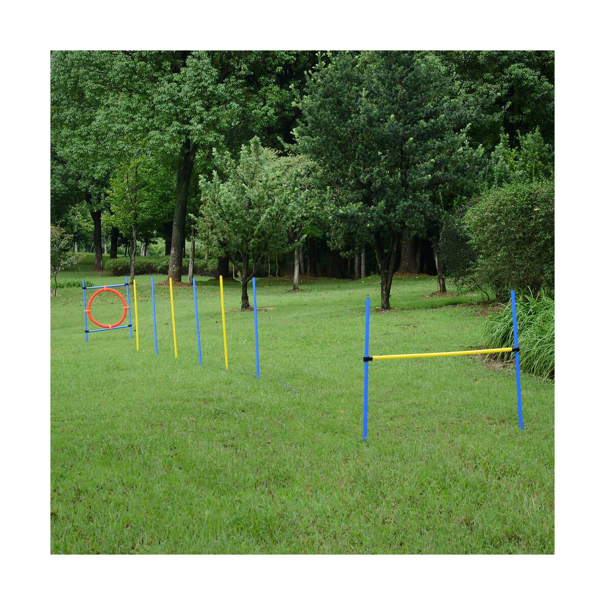Agility Sport Pour Chiens Équipement Complet : 6 Poteaux Slalom, Obstacle, Anneau + Sac De Transport Bleu Jaune Rouge