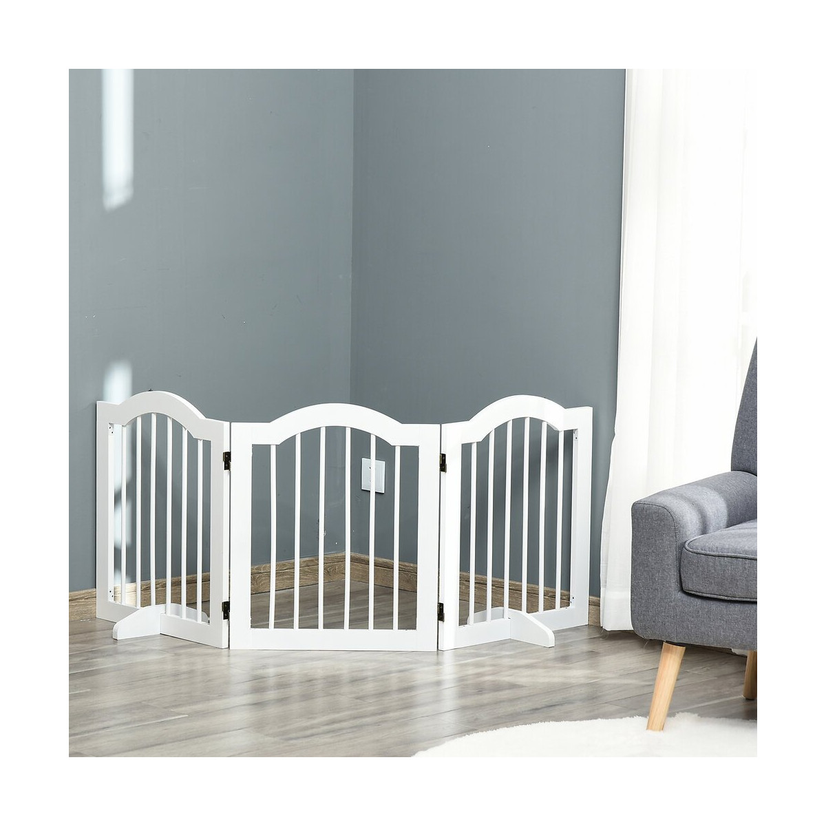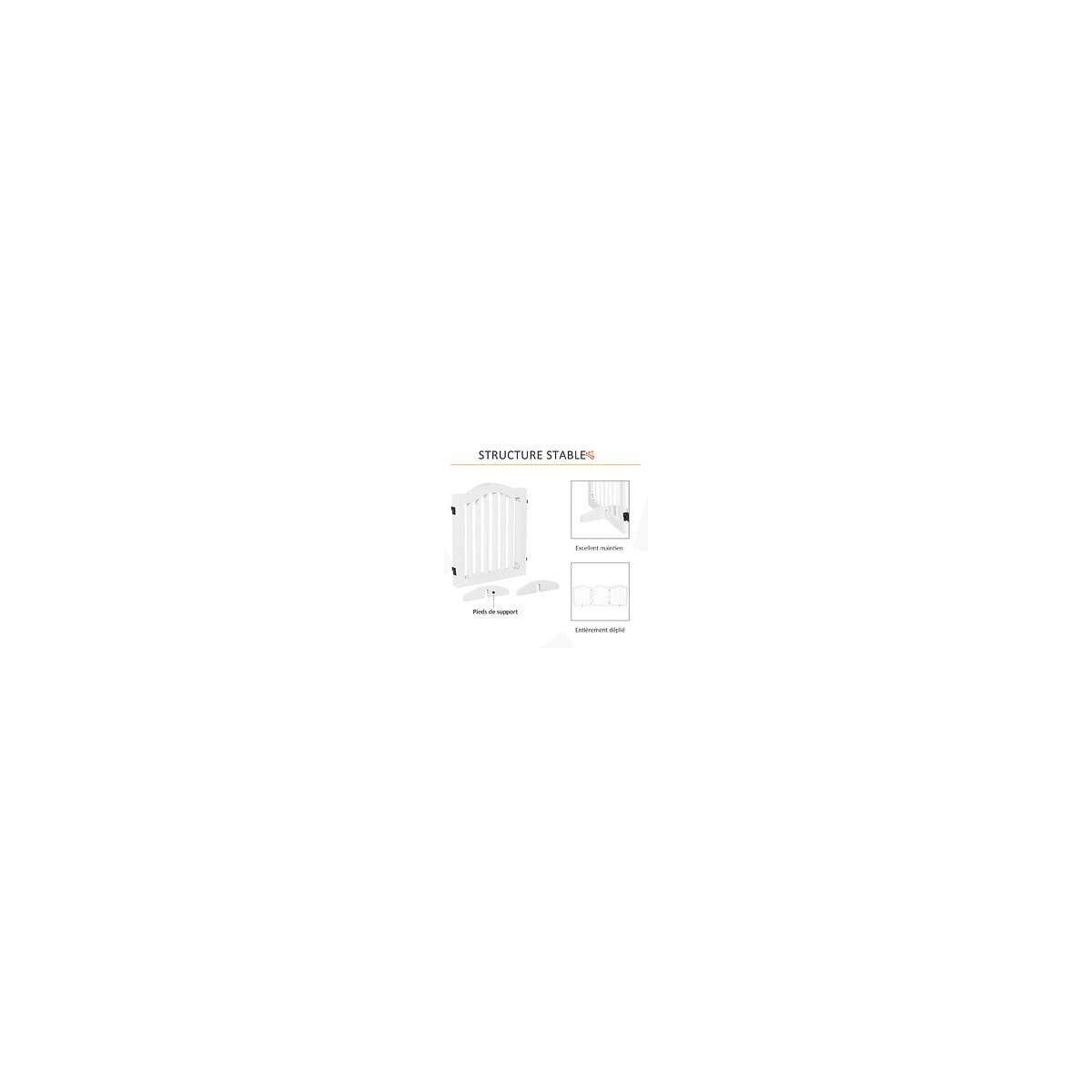 Cette barrière de sécurité pliable vous sera très pratique et vous permettra de retenir votre animal hors d'un accès ou d'une zone. Fabriquée intégralement en MDF, pouvant être étendue jusqu'à 1,54 m, cette barrière vous deviendra vite indispensable. Caractéristiques : - Barrière coloris blanc sobre et moderne en 3 panneaux avec double piètement support amovible inclus - Idéal pour protéger les escaliers, couloirs, chambres, accès avec porte de toute intrusion de votre animal - Permet d'éduquer votre animal quant aux zones autorisées - Modulable très facilement pour s'adapter à différentes tailles de portes ou d'accès - Barrière pliable et portable, rangement compact pratique si inutilisation - Patins antidérapants afin d'optimiser la stabilité de la barrière - Fabrication à partir de matériau résistant (MDF) pour un usage pérenne Spécifications : - Couleur : blanc - Matériau principal : MDF - Dimensions ouvertes : 154,5L x 61H cm - Epaisseur panneau : 1,8 cm - Taille de chaque panneau : 50,8L x 61H cm - Livraison effectuée en un colis - Réf. : D06-048V01WTSpécifications techniques